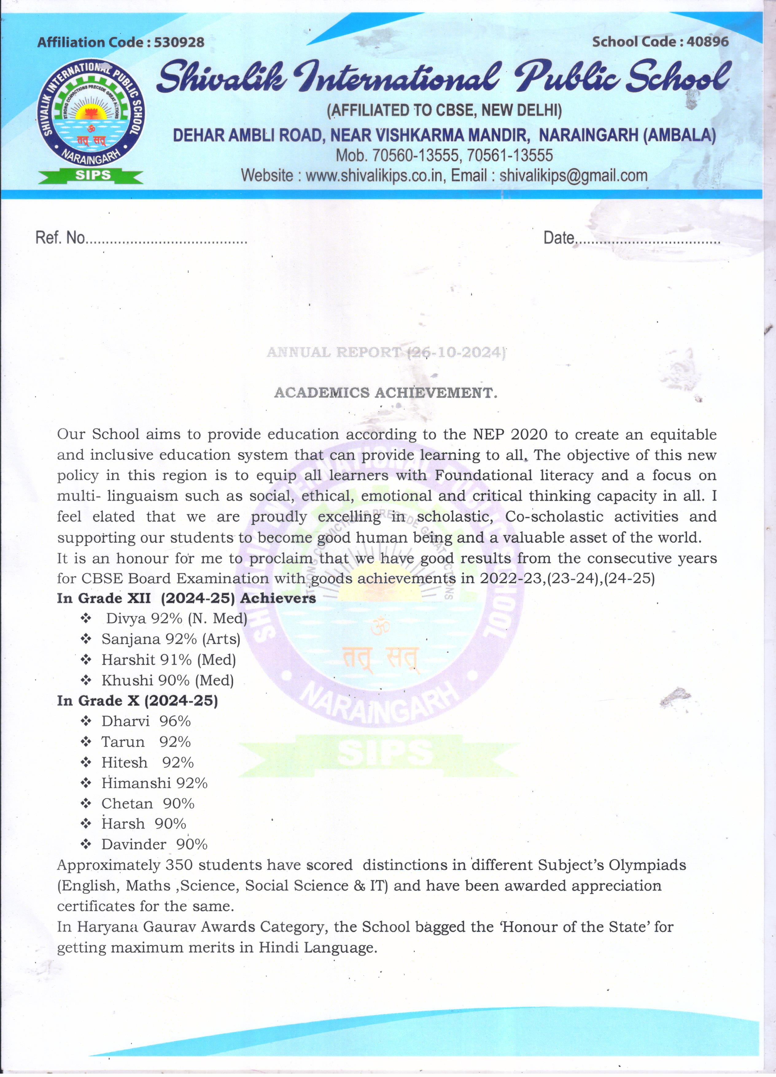 SHIVALIK INTL. SR. SEC. PUBLIC SCHOOL, NARAINGARH