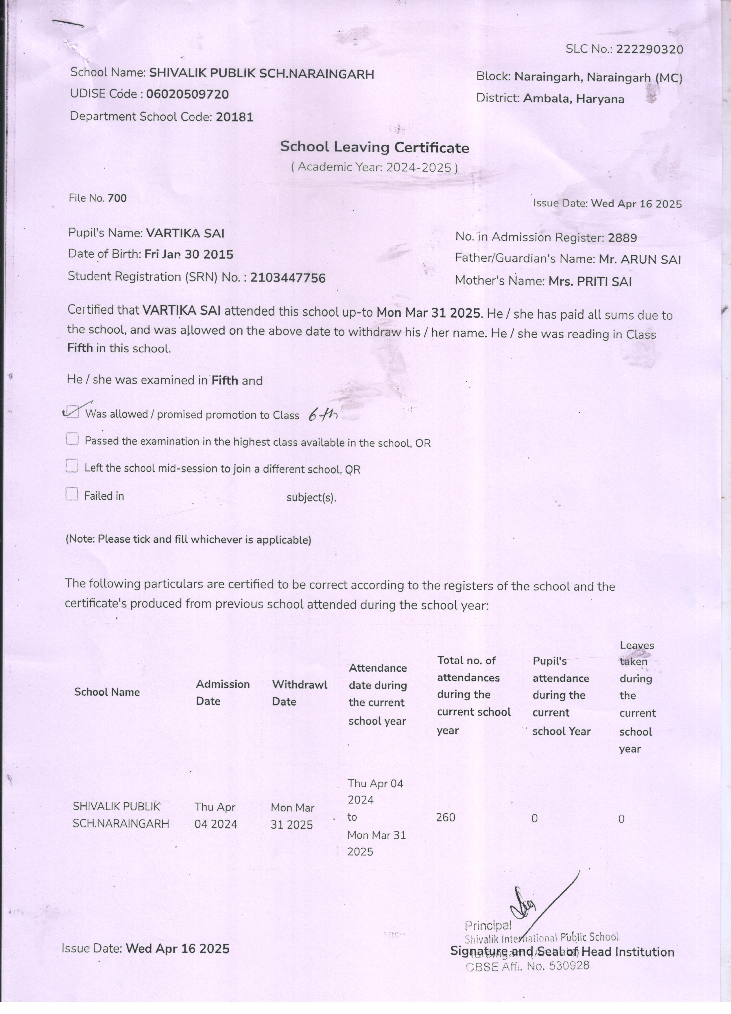 2 2889 VARTIKA SAI ARUN SAI 2024-25 Attachment