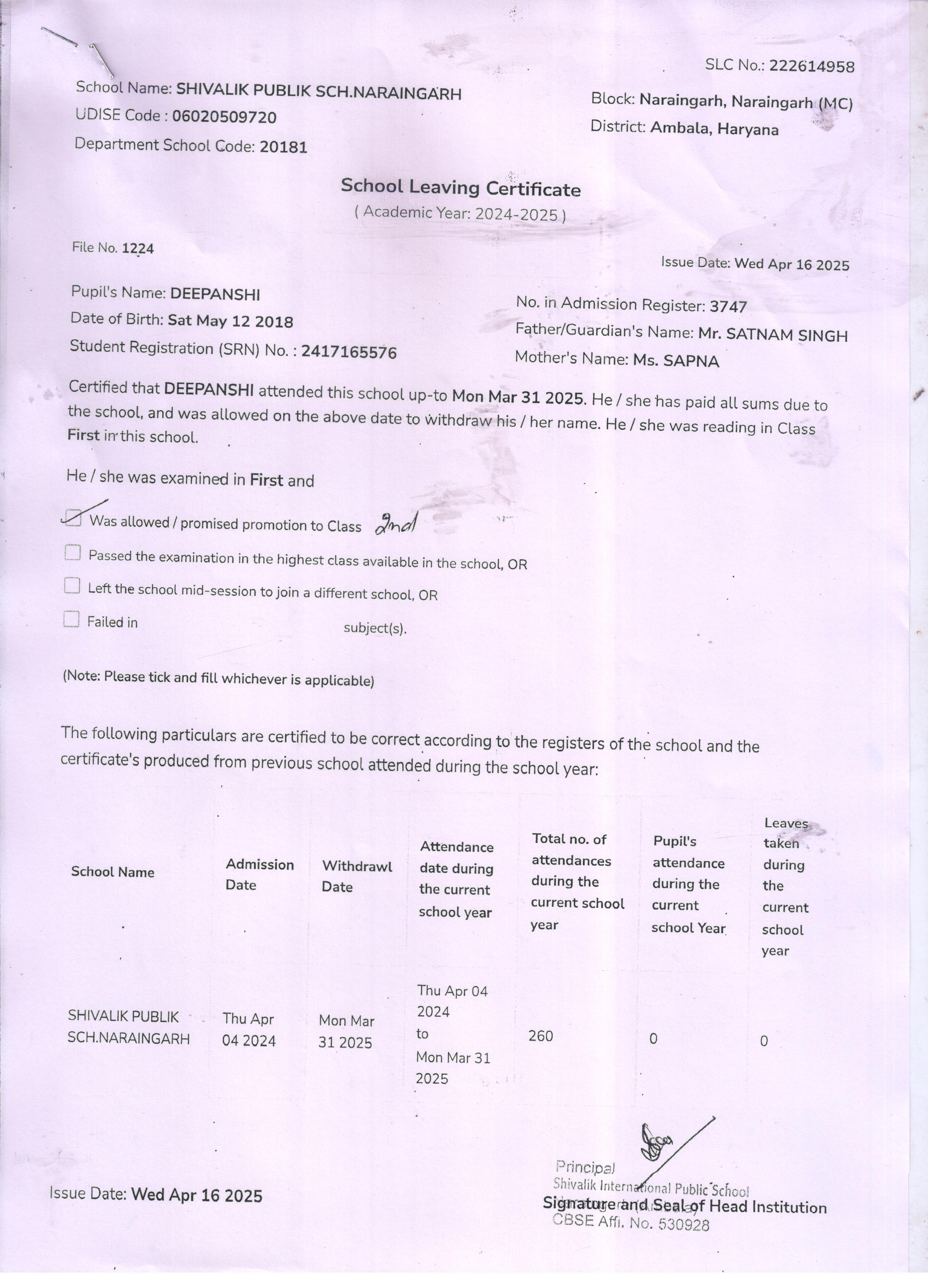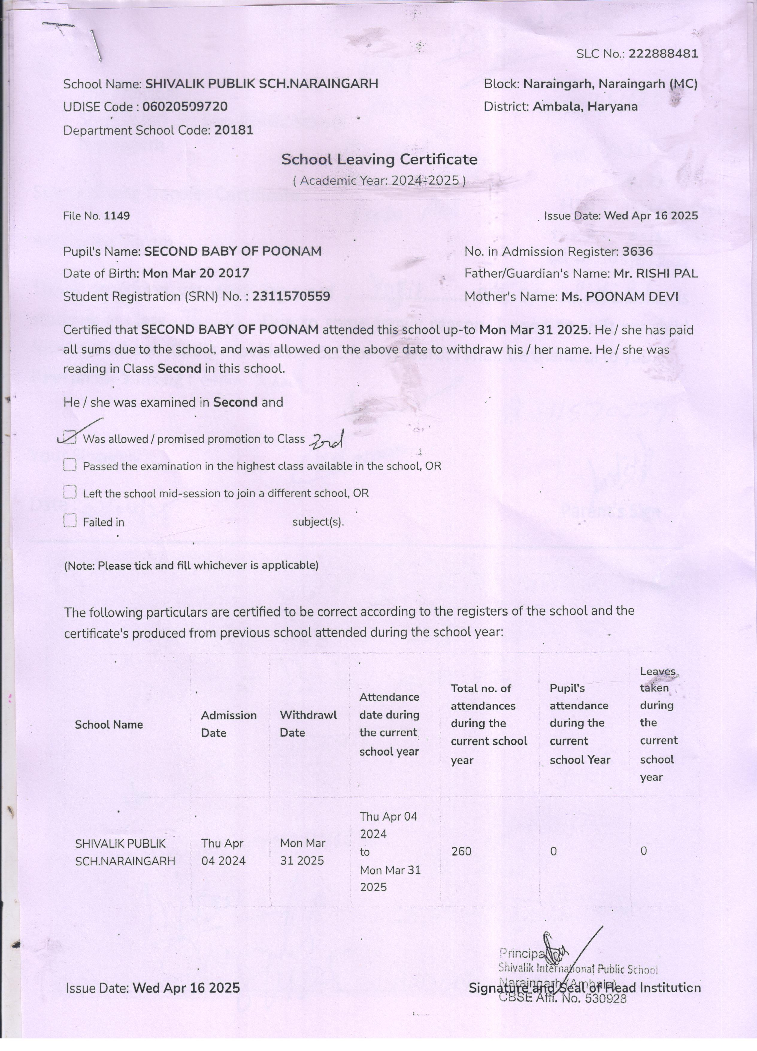 6 3636 SECOND BABY OF POONAM RISHI PAL 2024-25 Attachment
