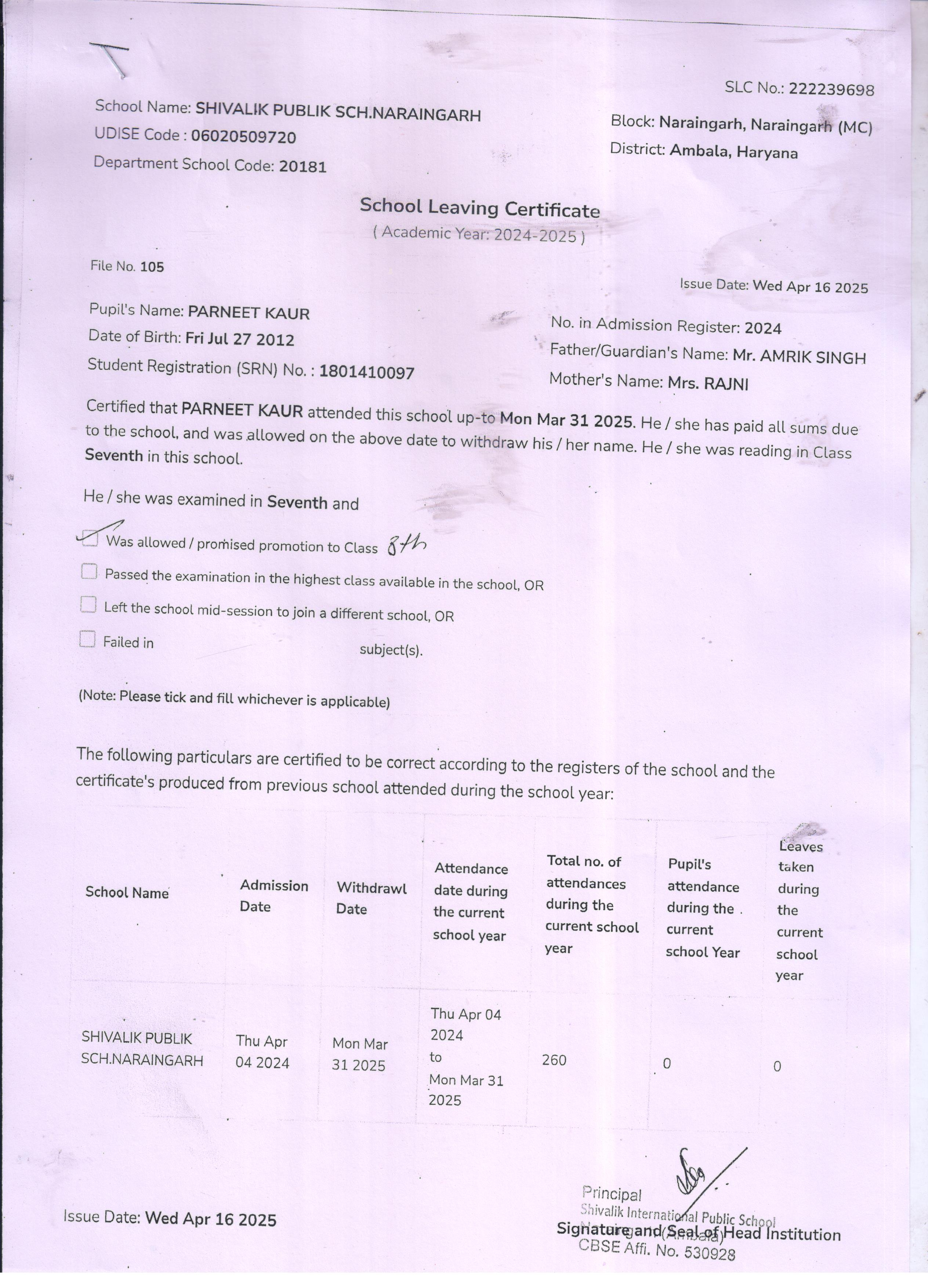 9 2024 PARNEET KAUR AMRIK SINGH 2024-25 Attachment
