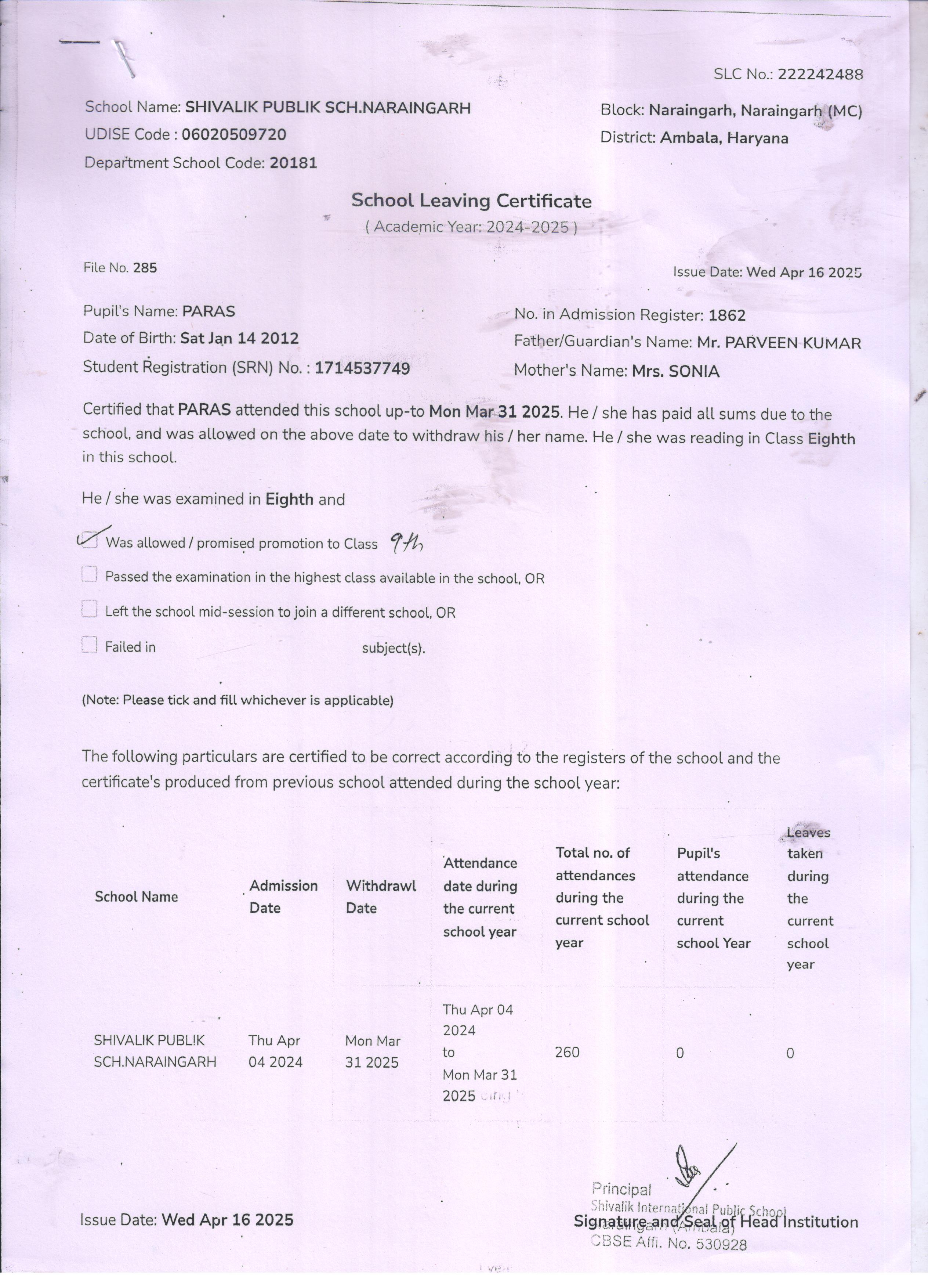 10 1862 PARAS PARVEEN KUMAR 2024-25 Attachment