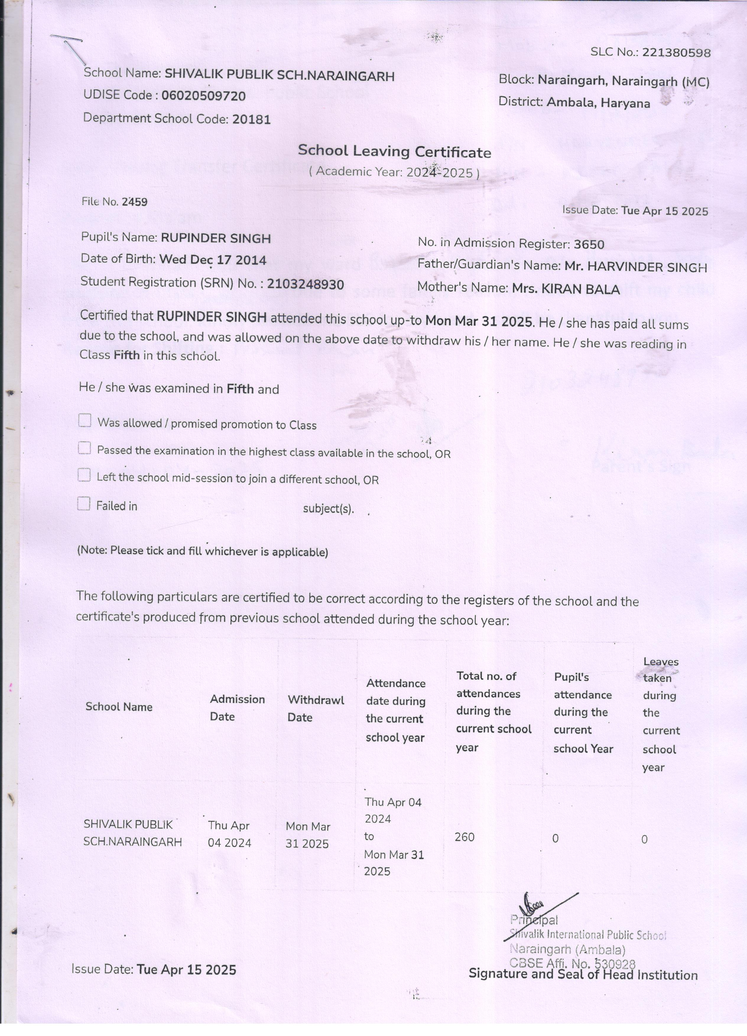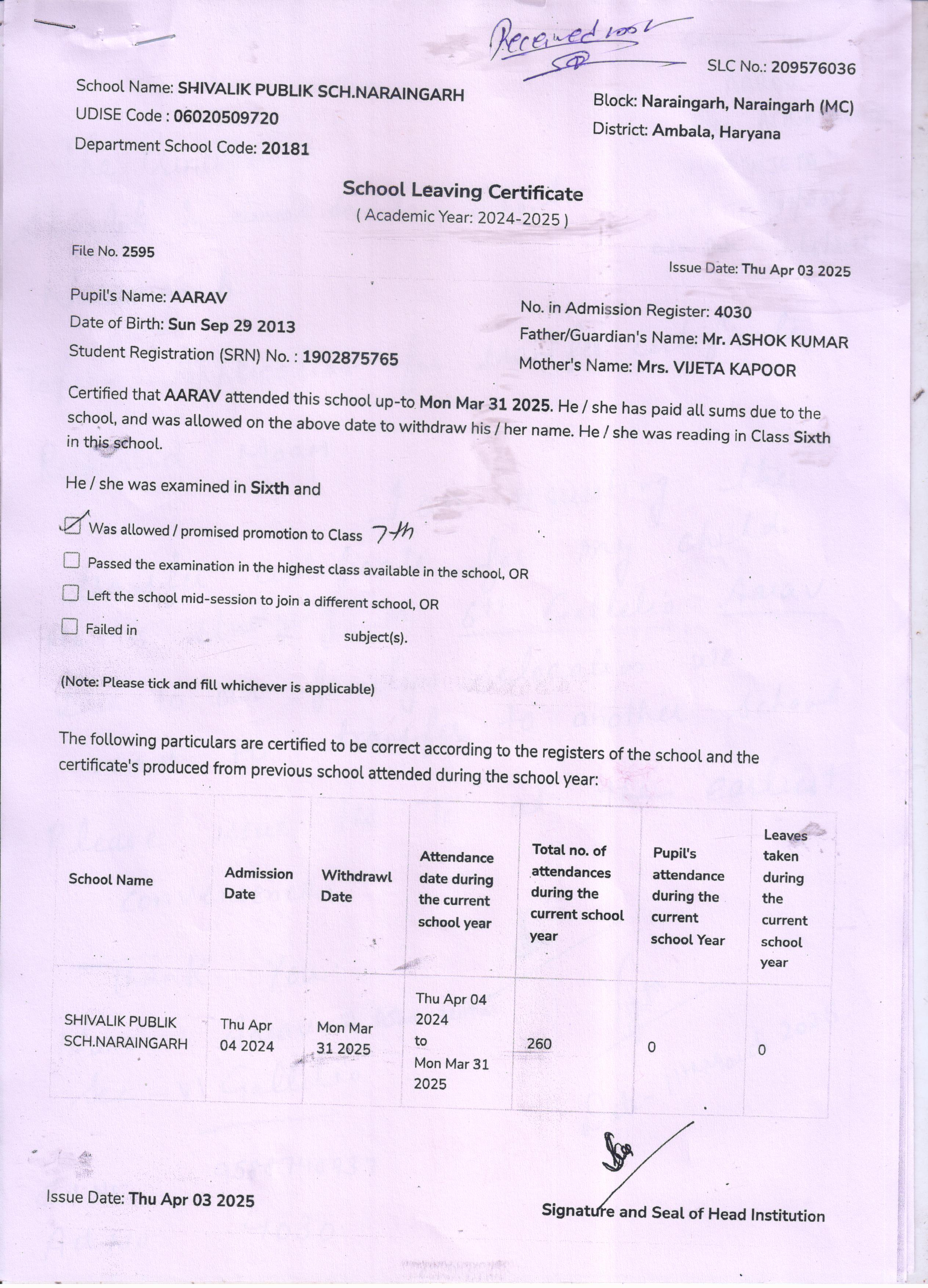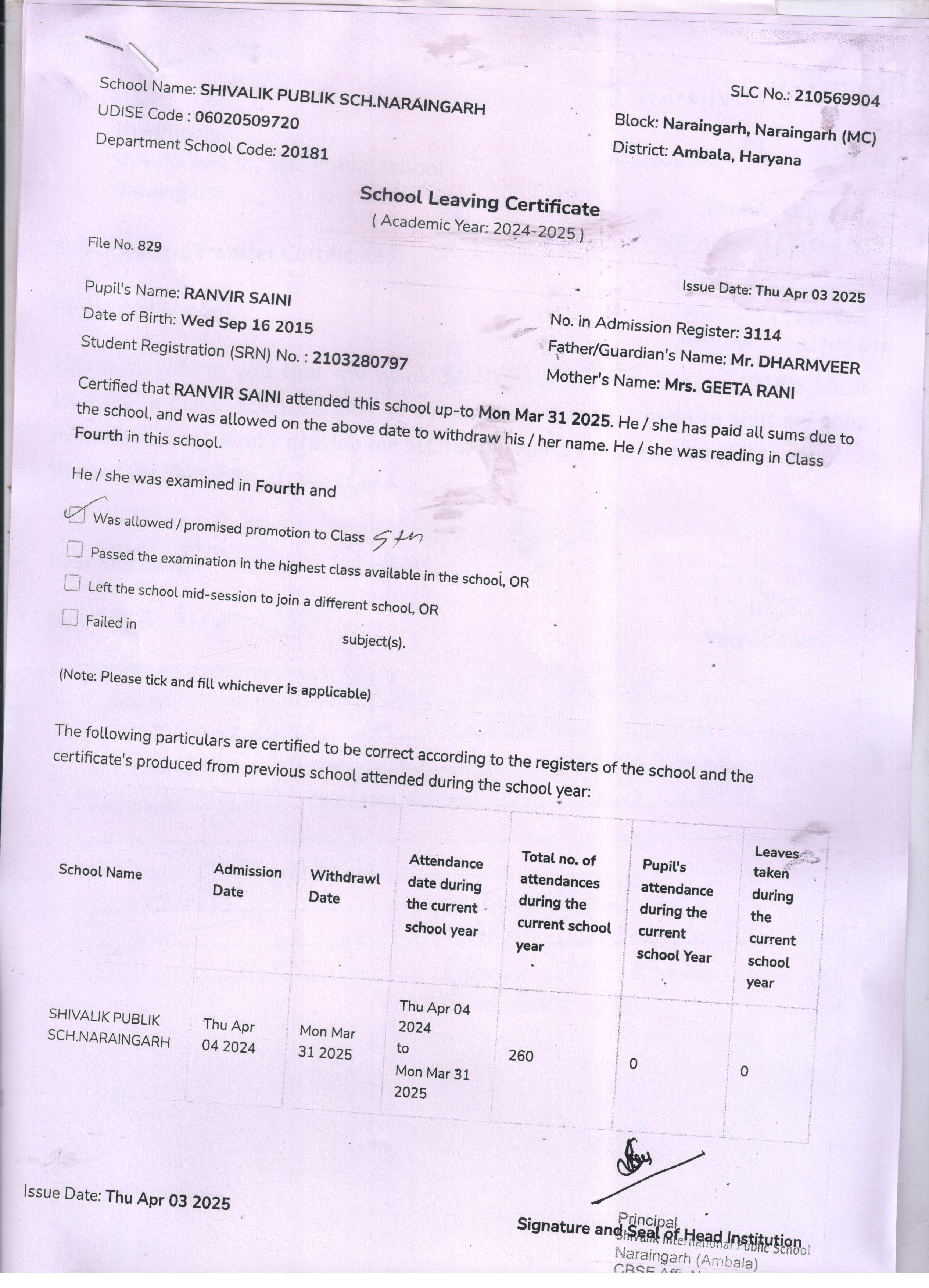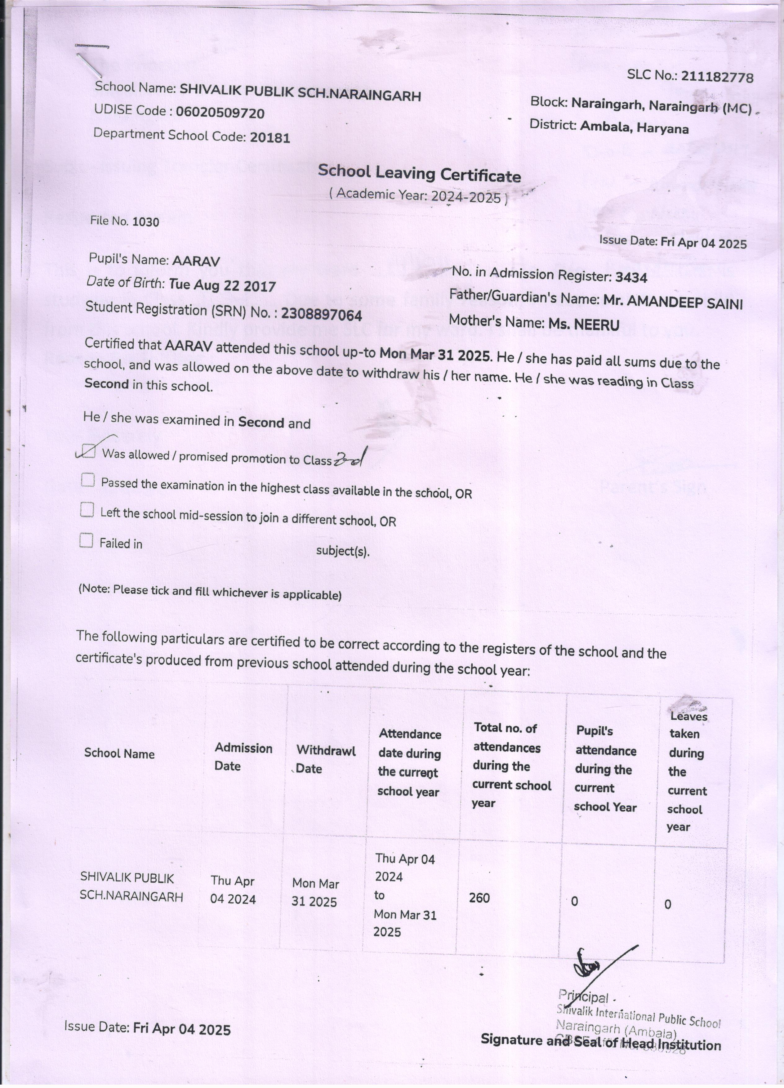 59 3434 AARAV AMANDEEP SAINI 2024-25 Attachment