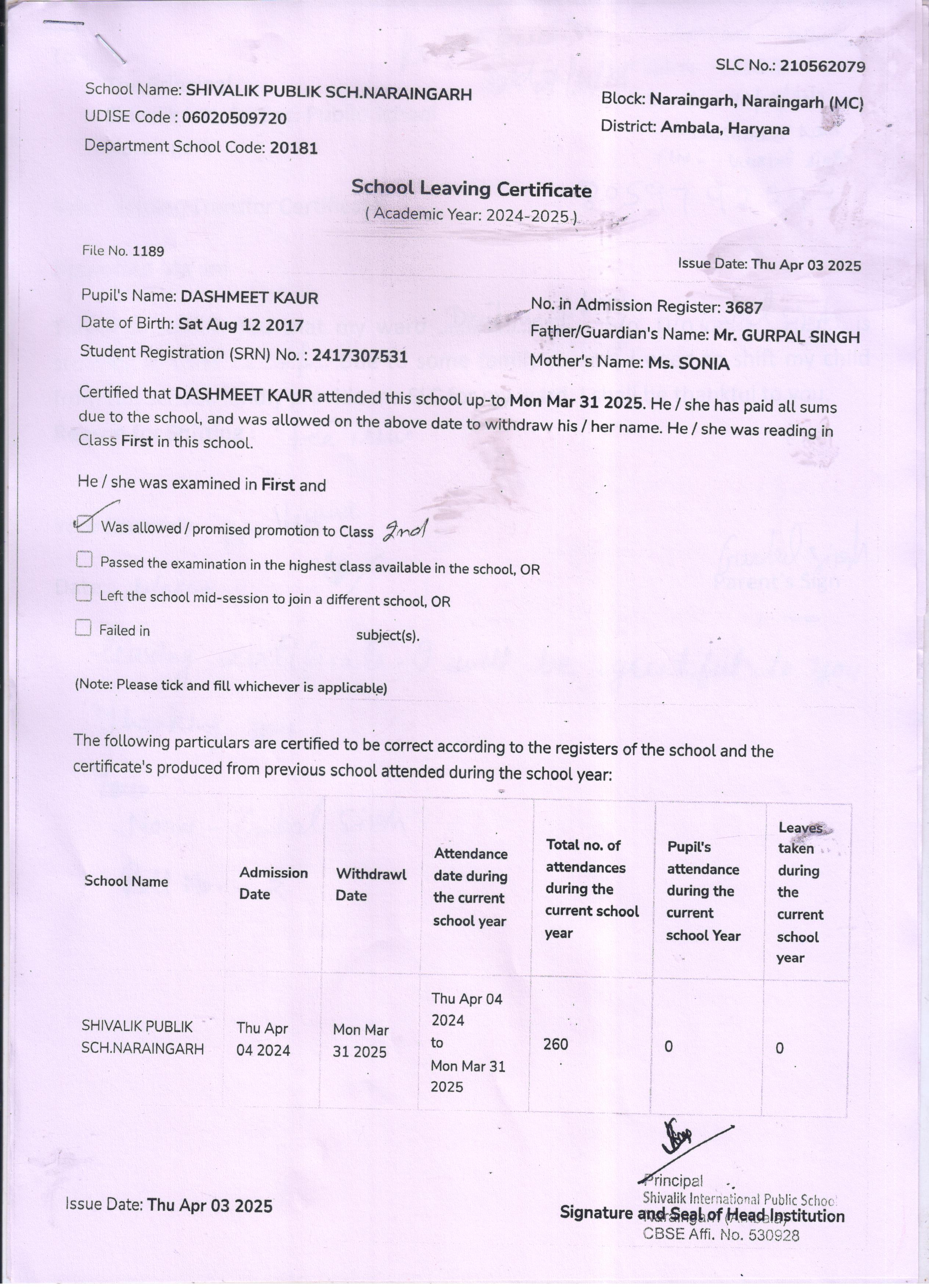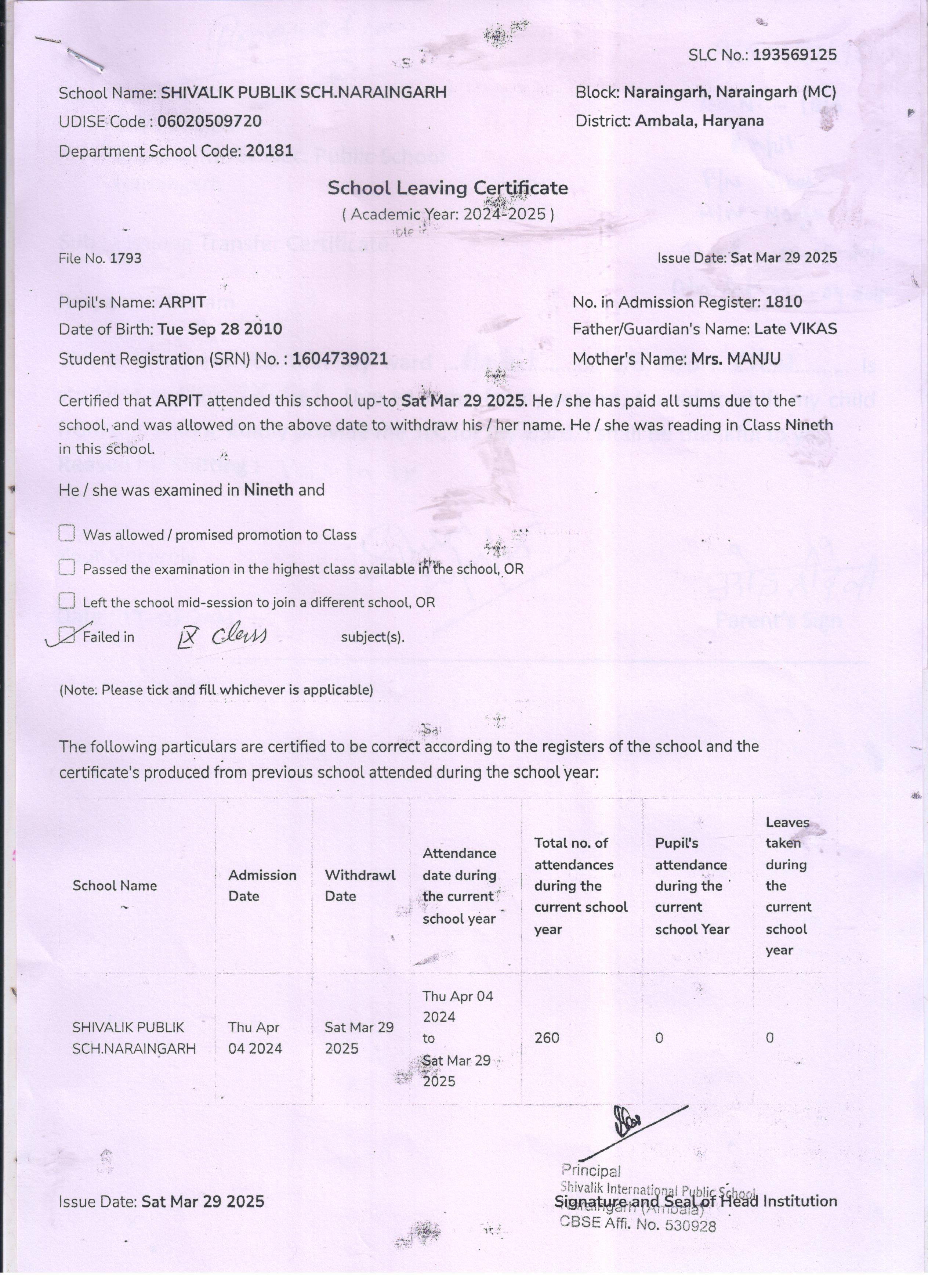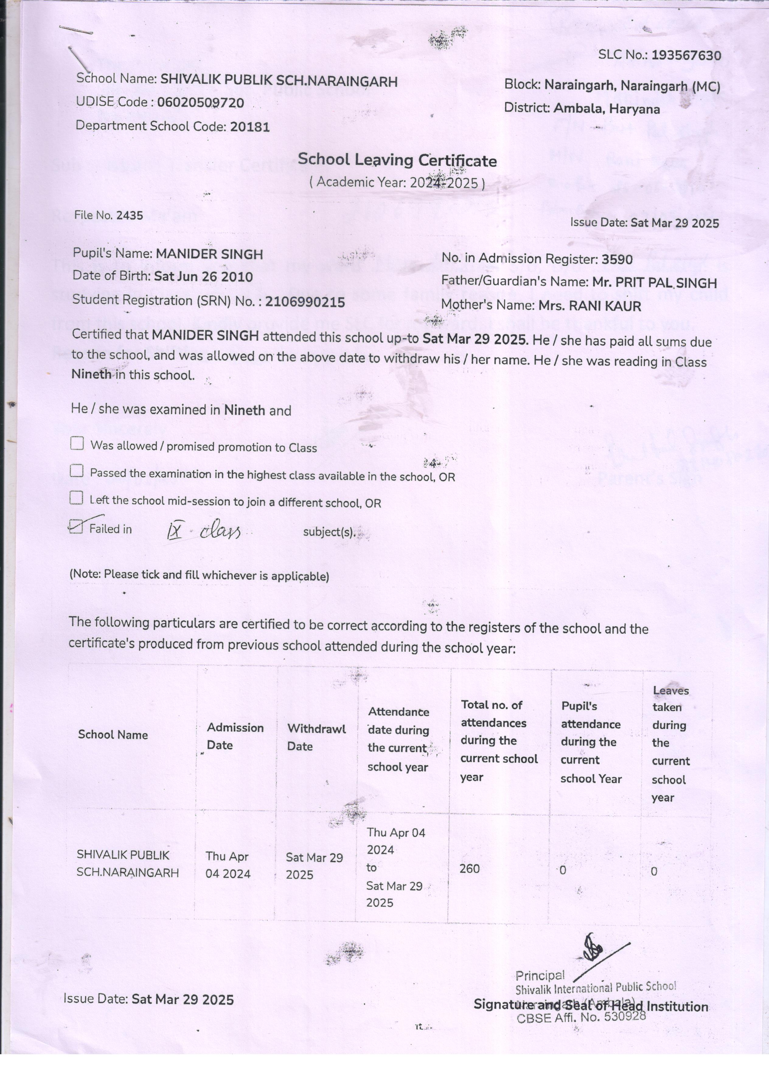 59 3434 AARAV AMANDEEP SAINI 2024-25 Attachment