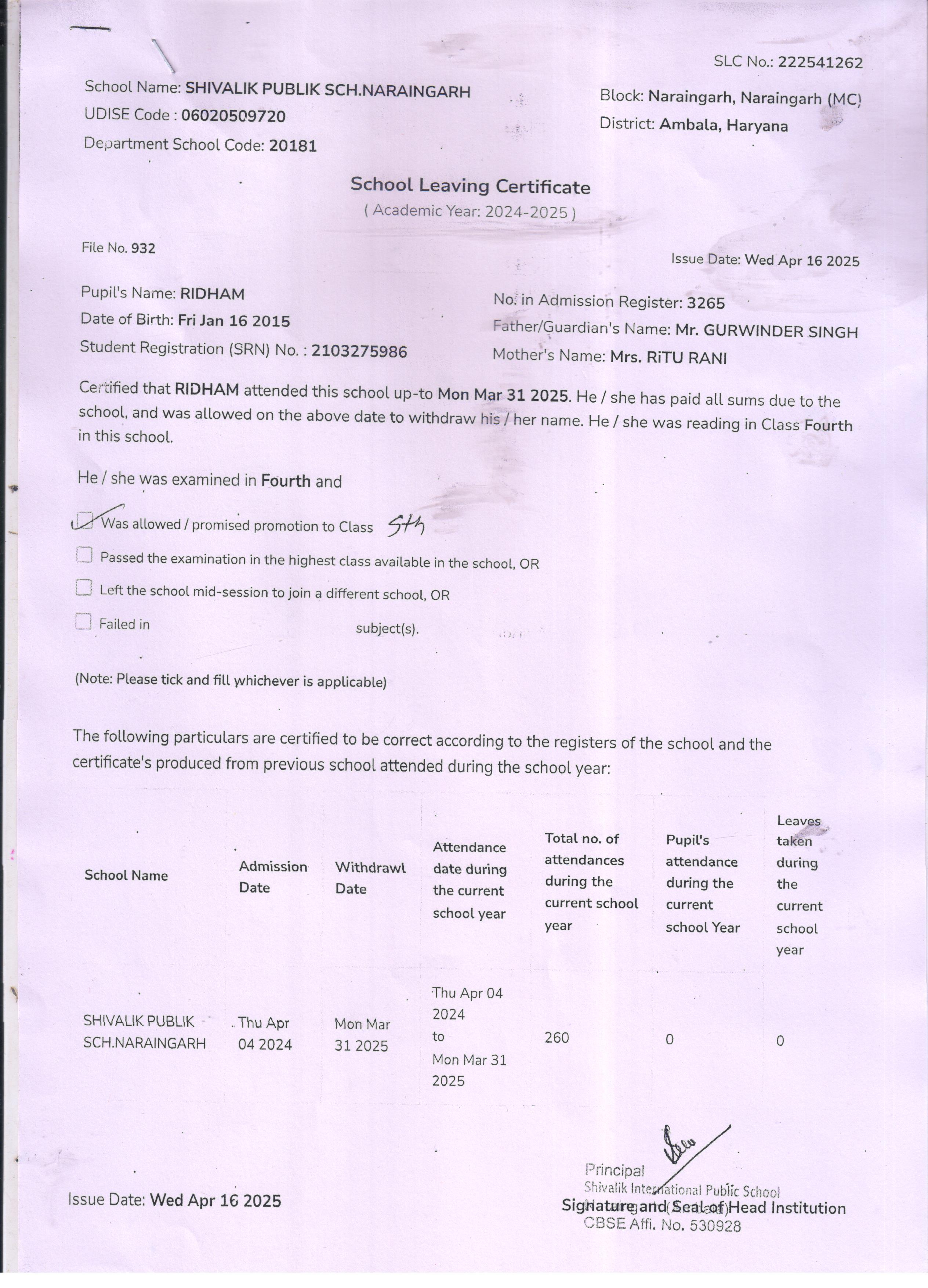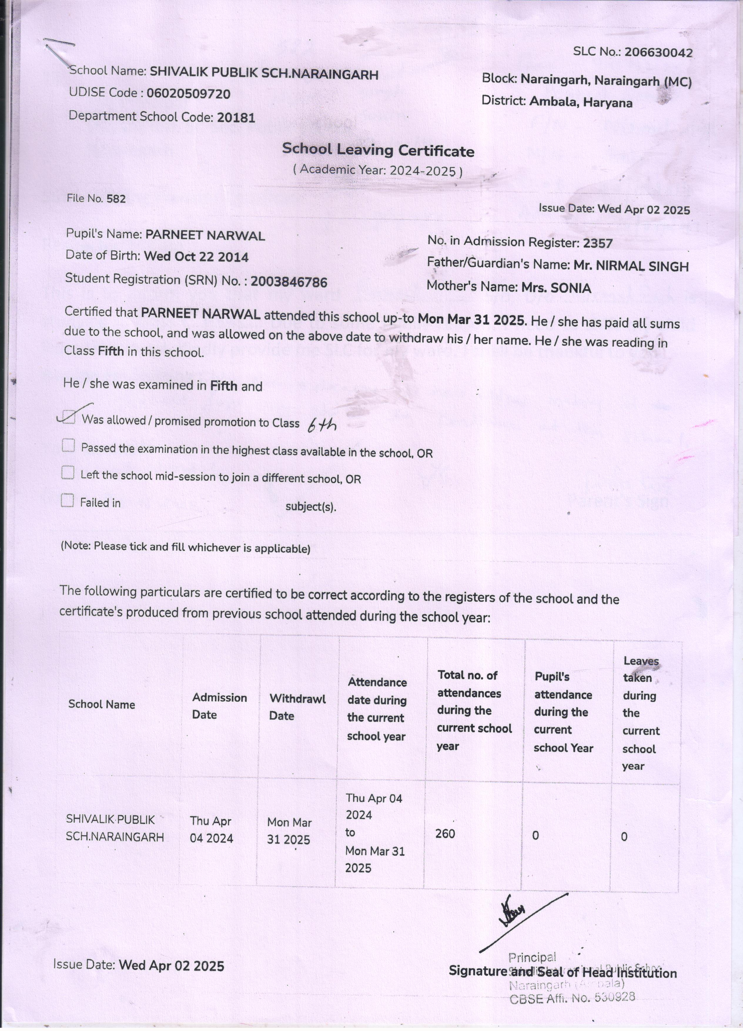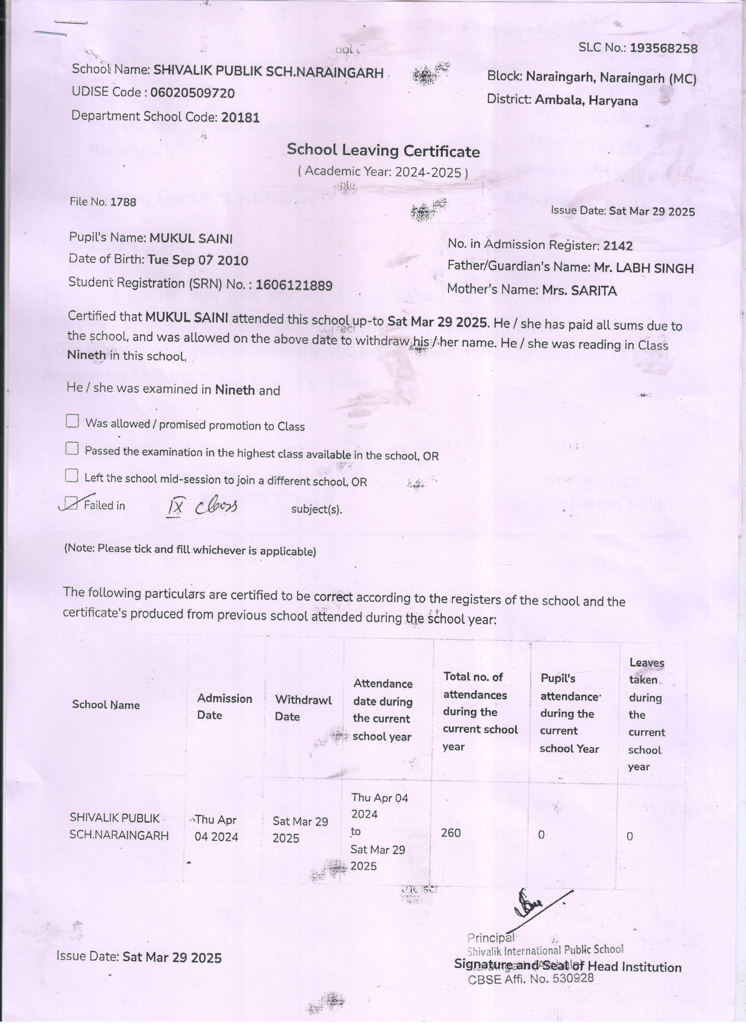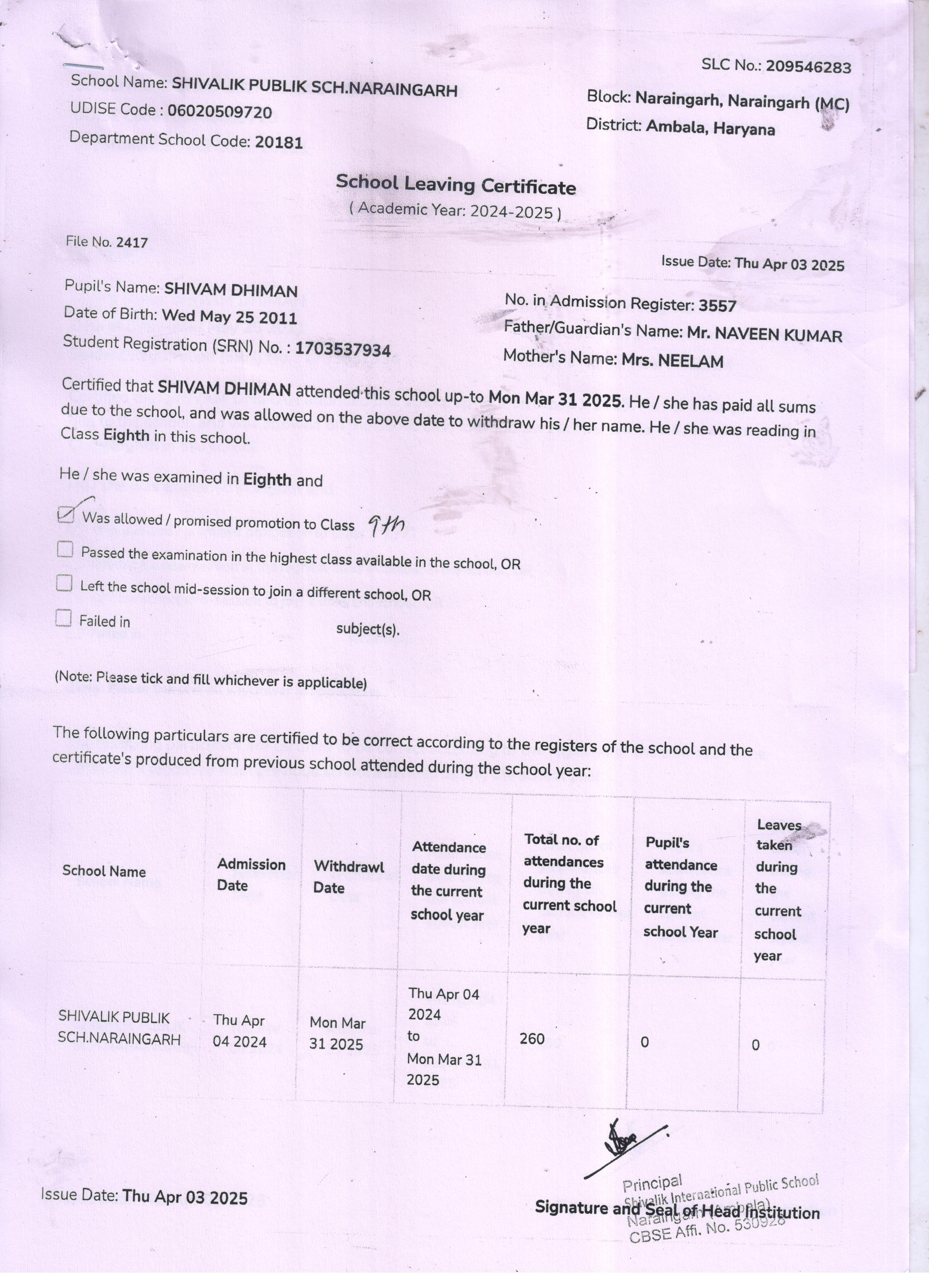 59 3434 AARAV AMANDEEP SAINI 2024-25 Attachment