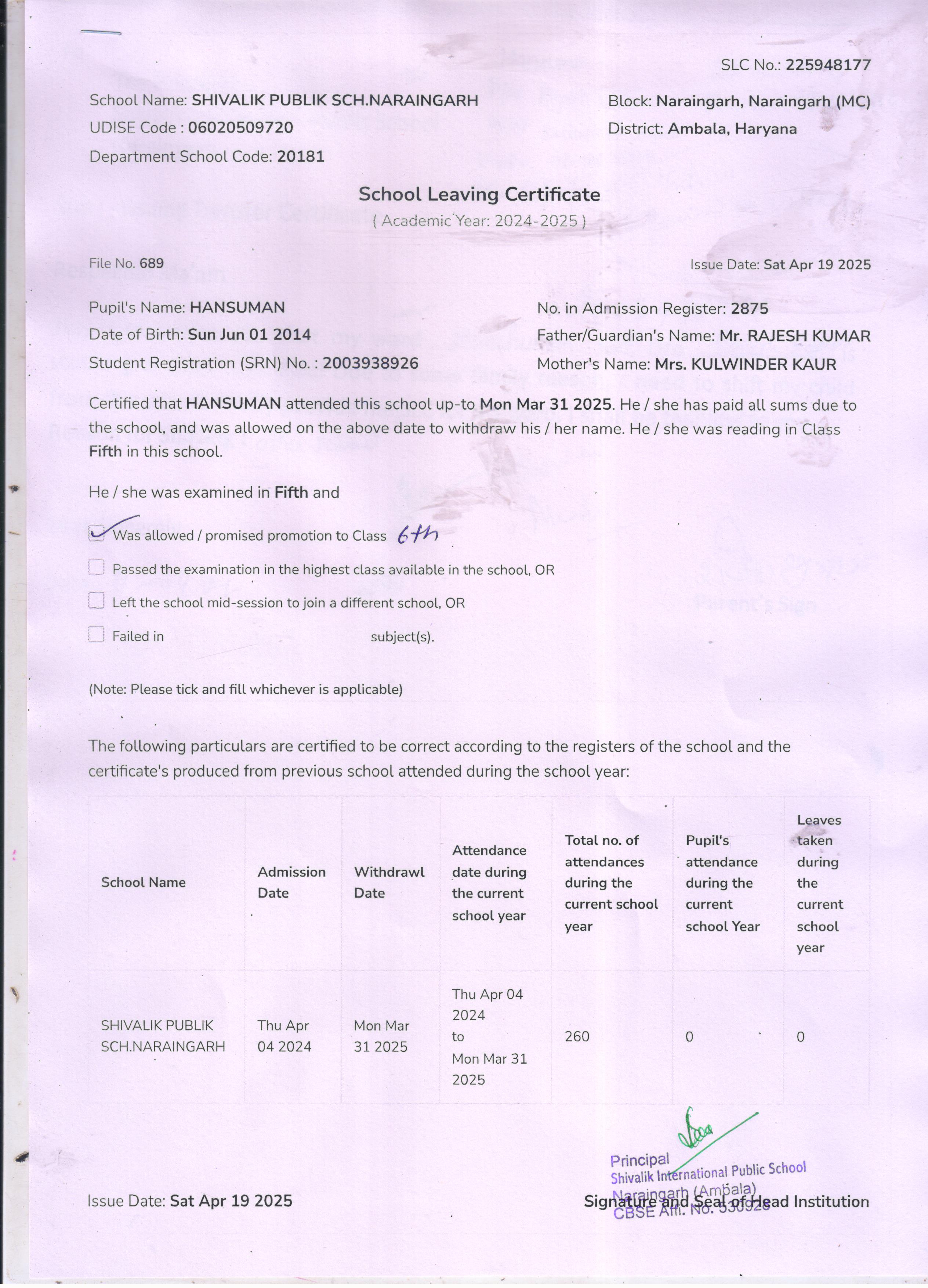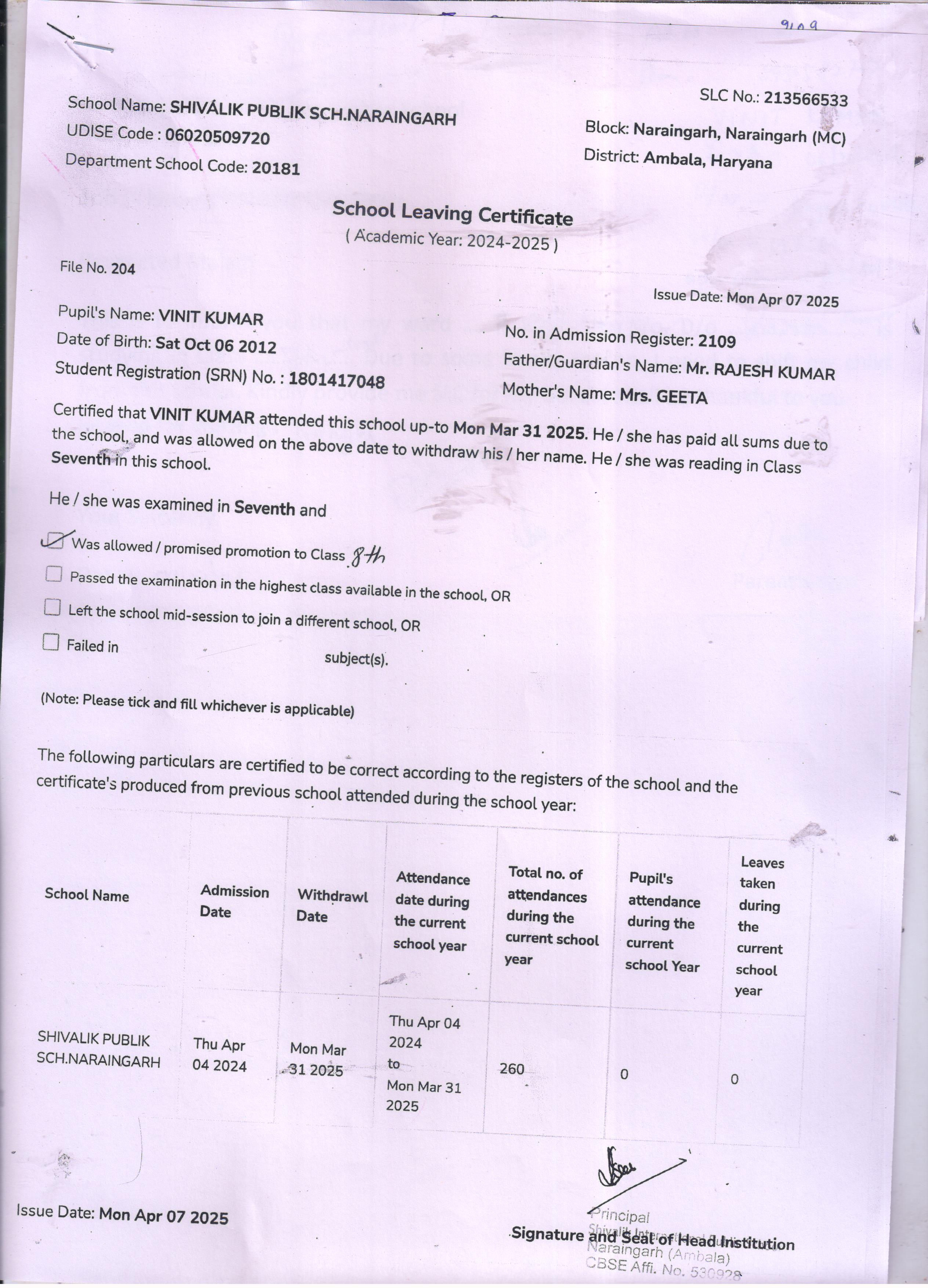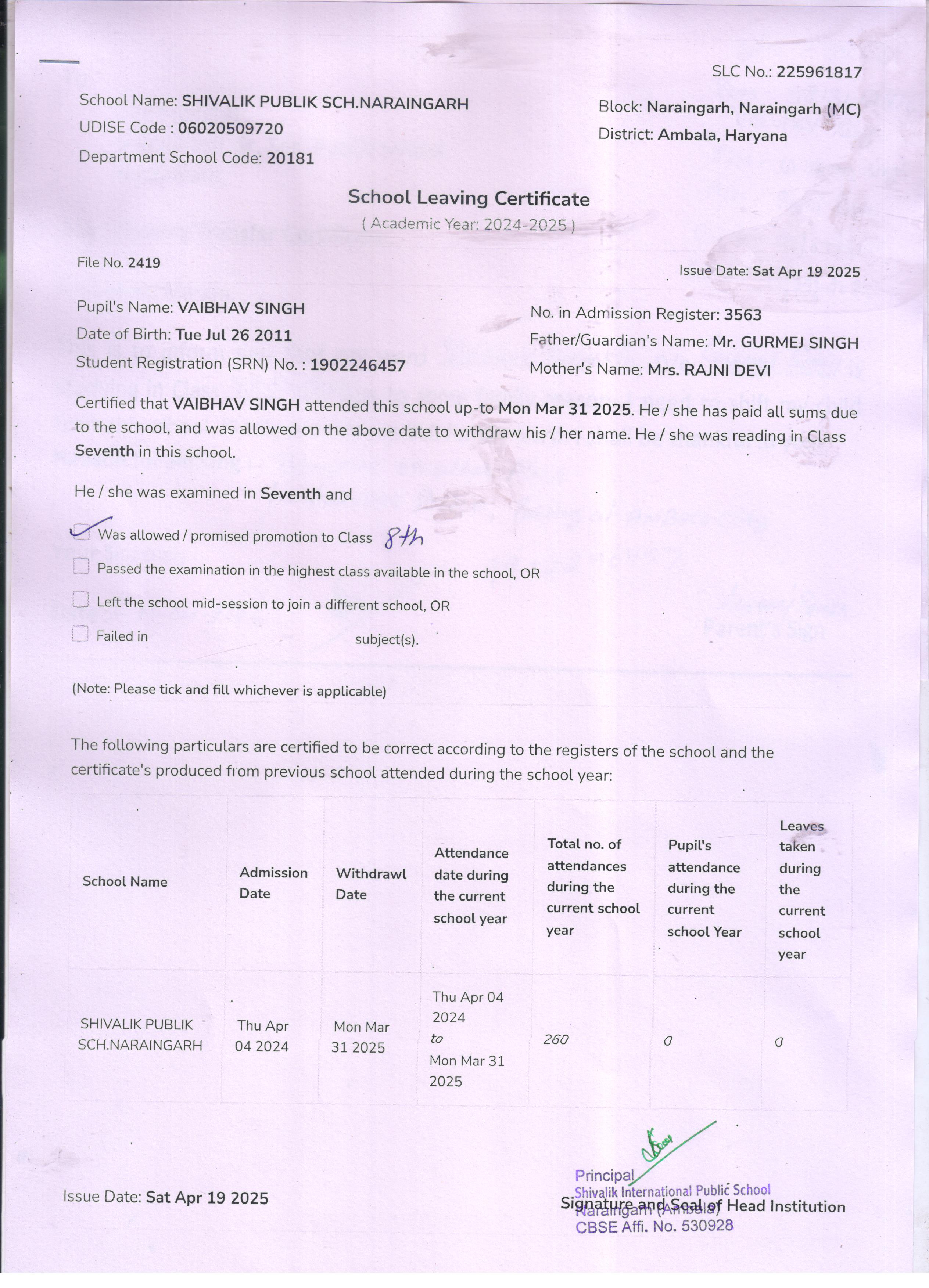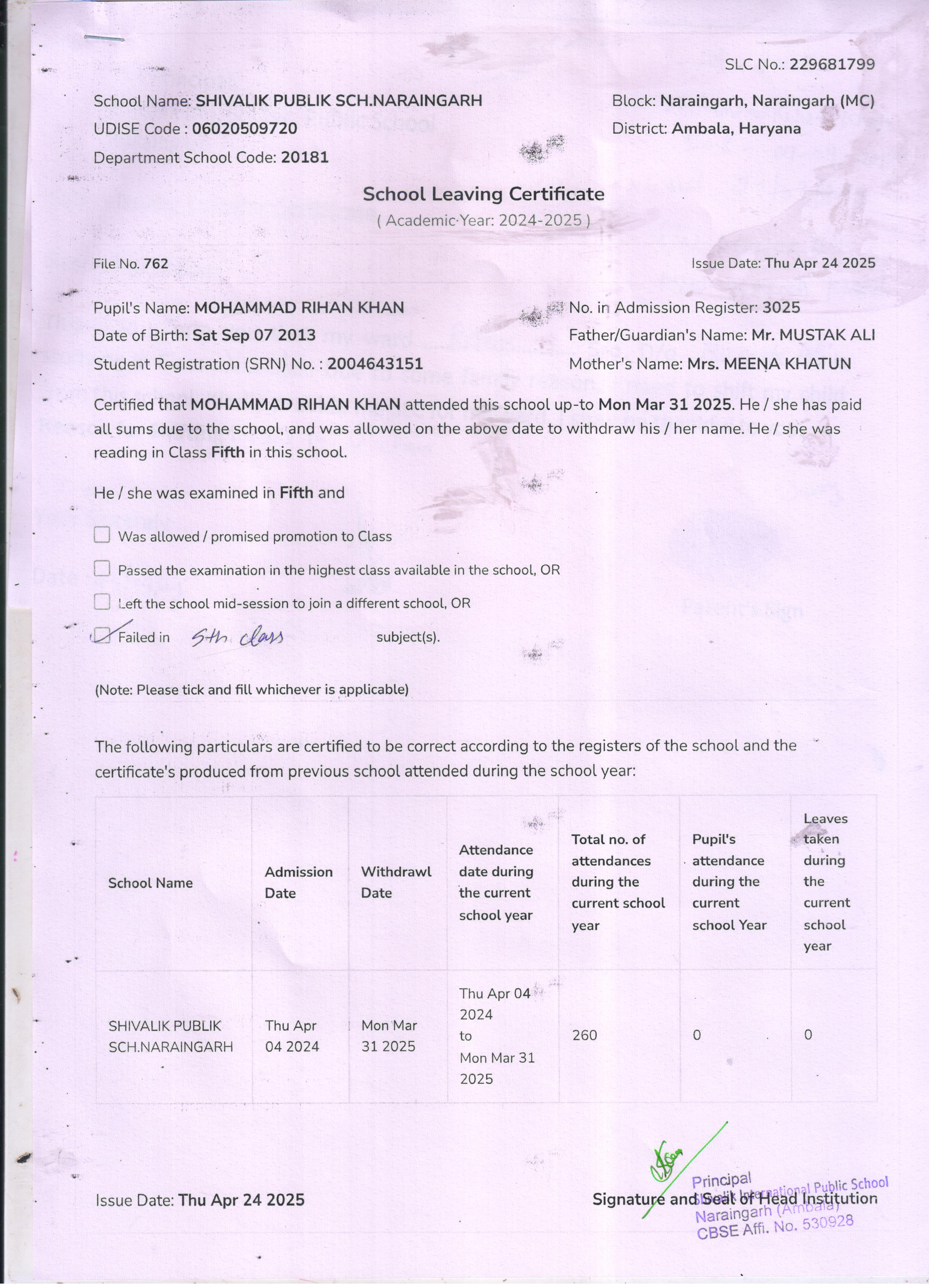 50 4529 VIHAN SONU KUMAR 2024-25 Attachment