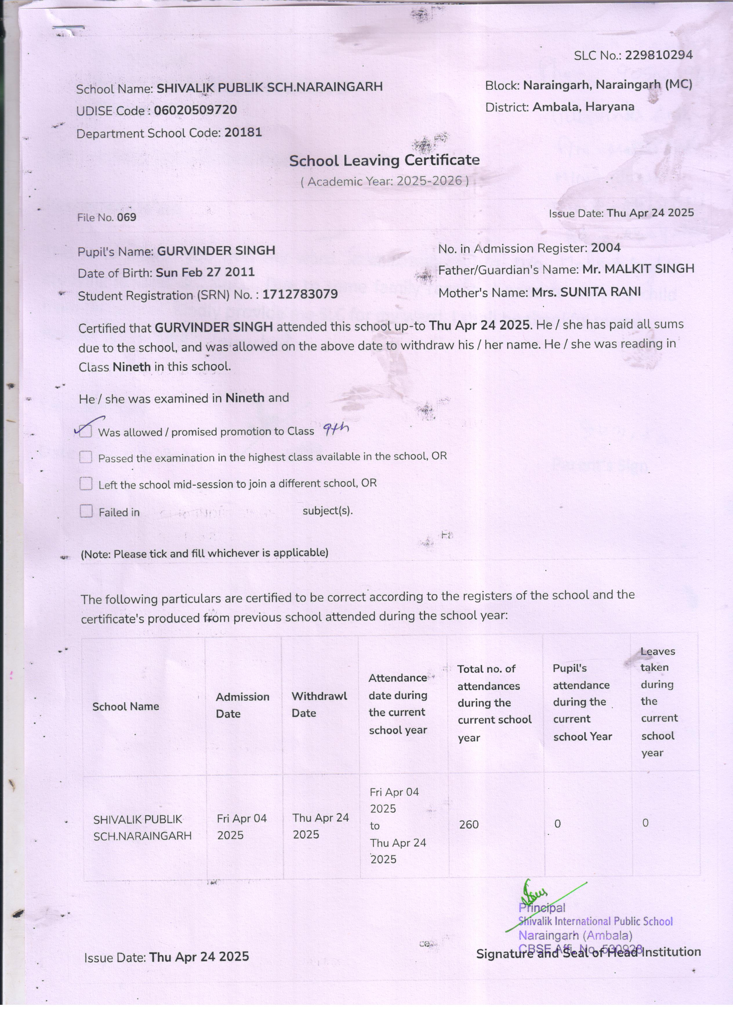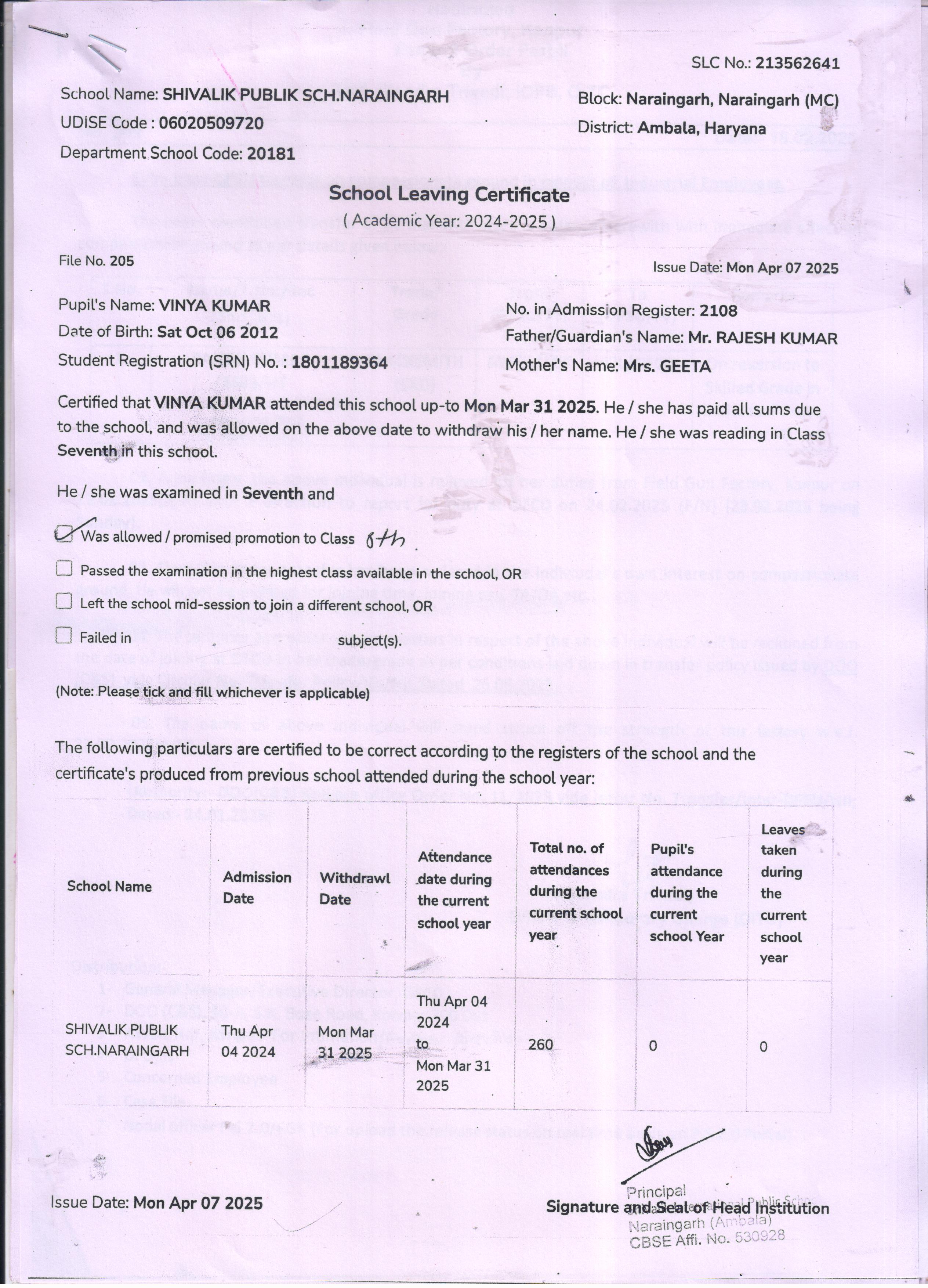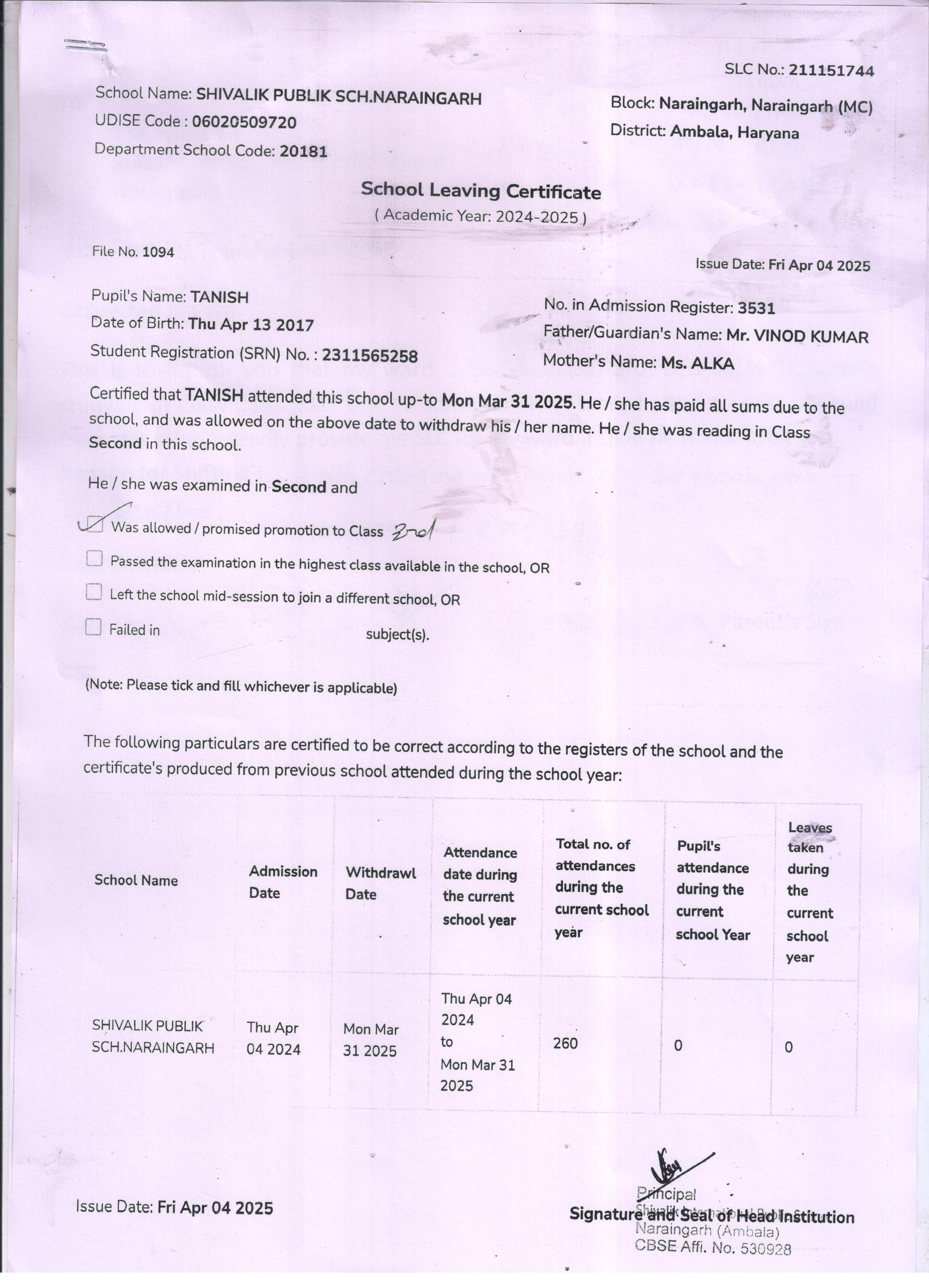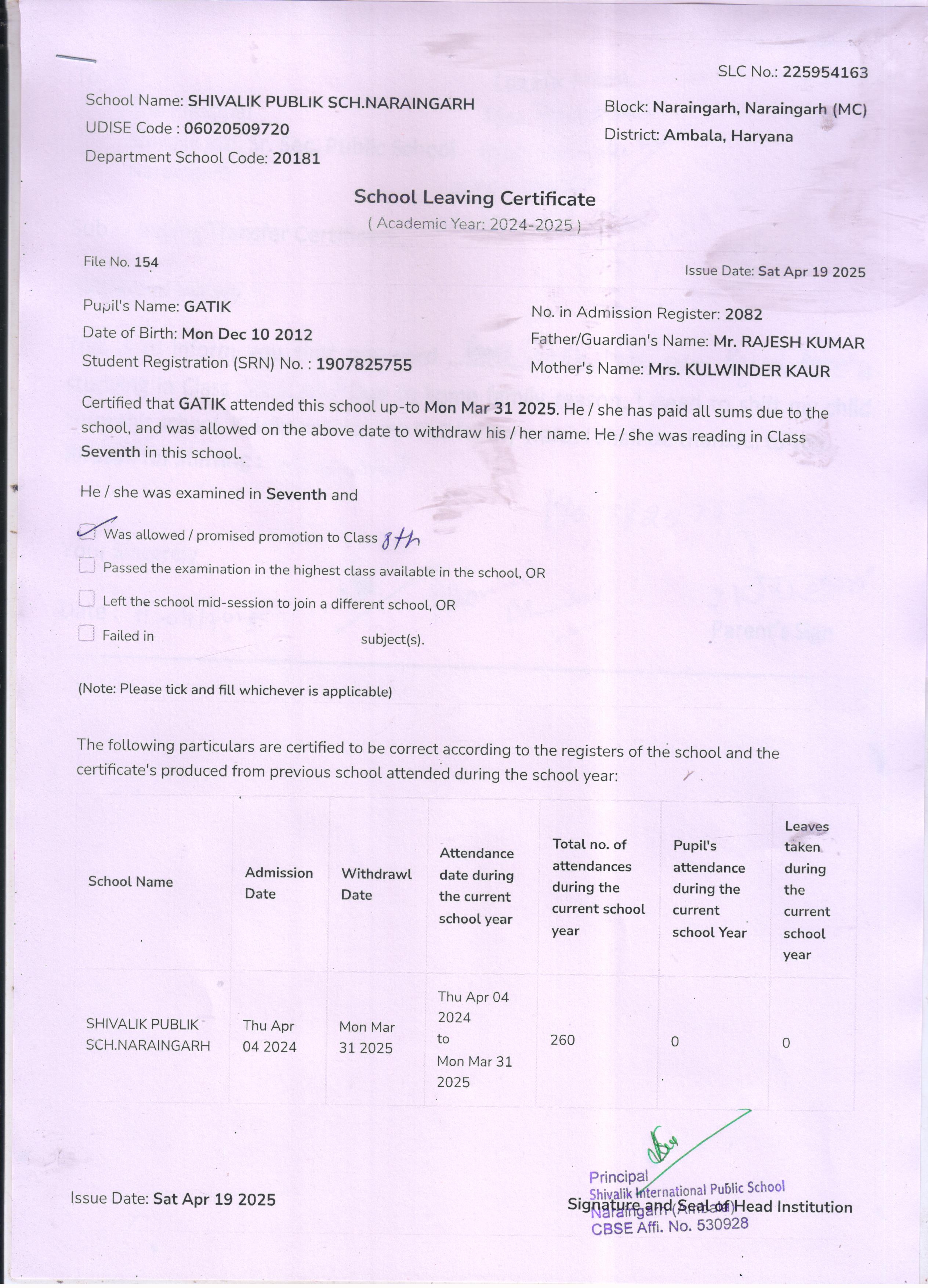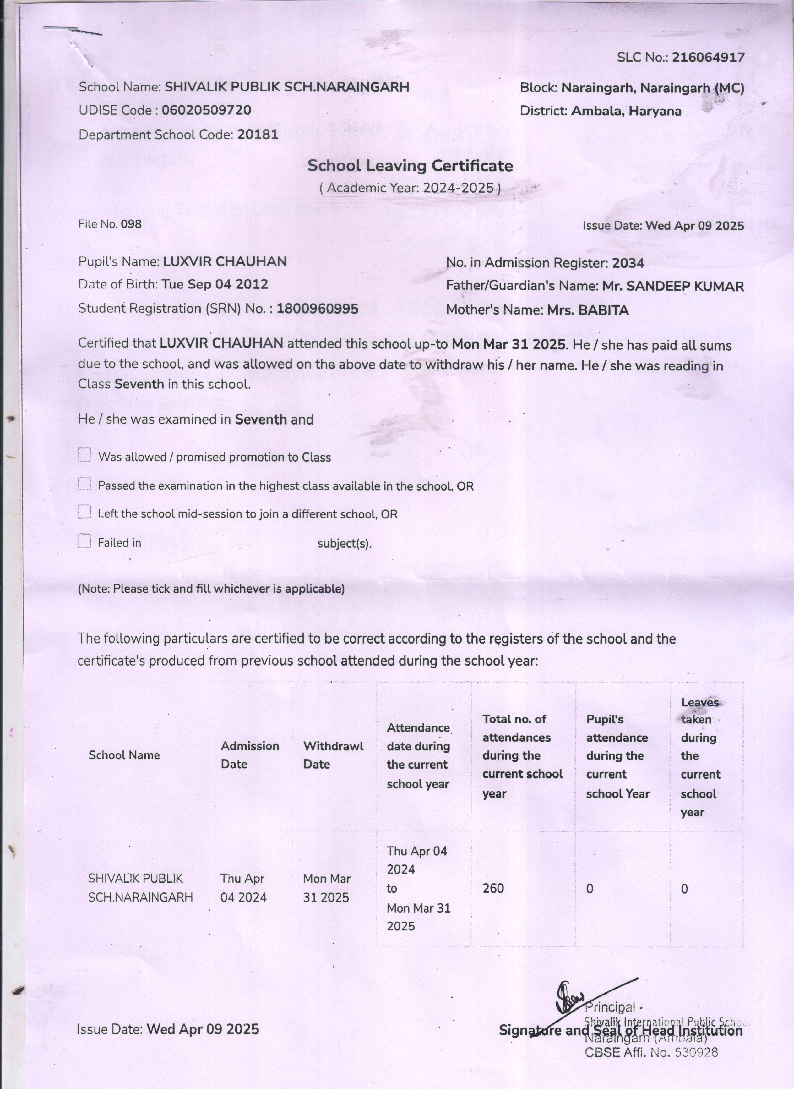 50 4529 VIHAN SONU KUMAR 2024-25 Attachment