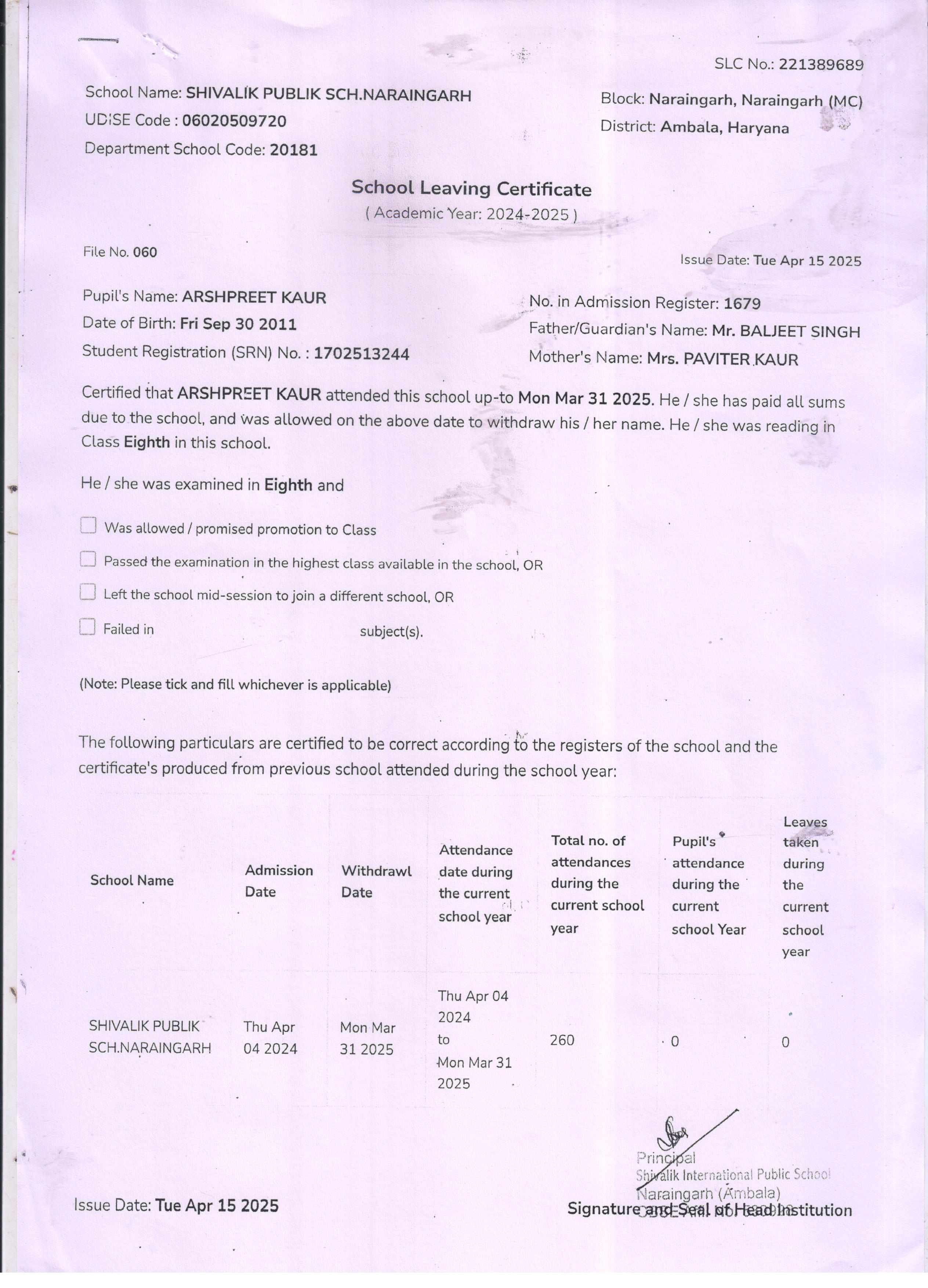 22 1679 ARSHPREET KAUR BALJEET SINGH 2024-25 Attachment