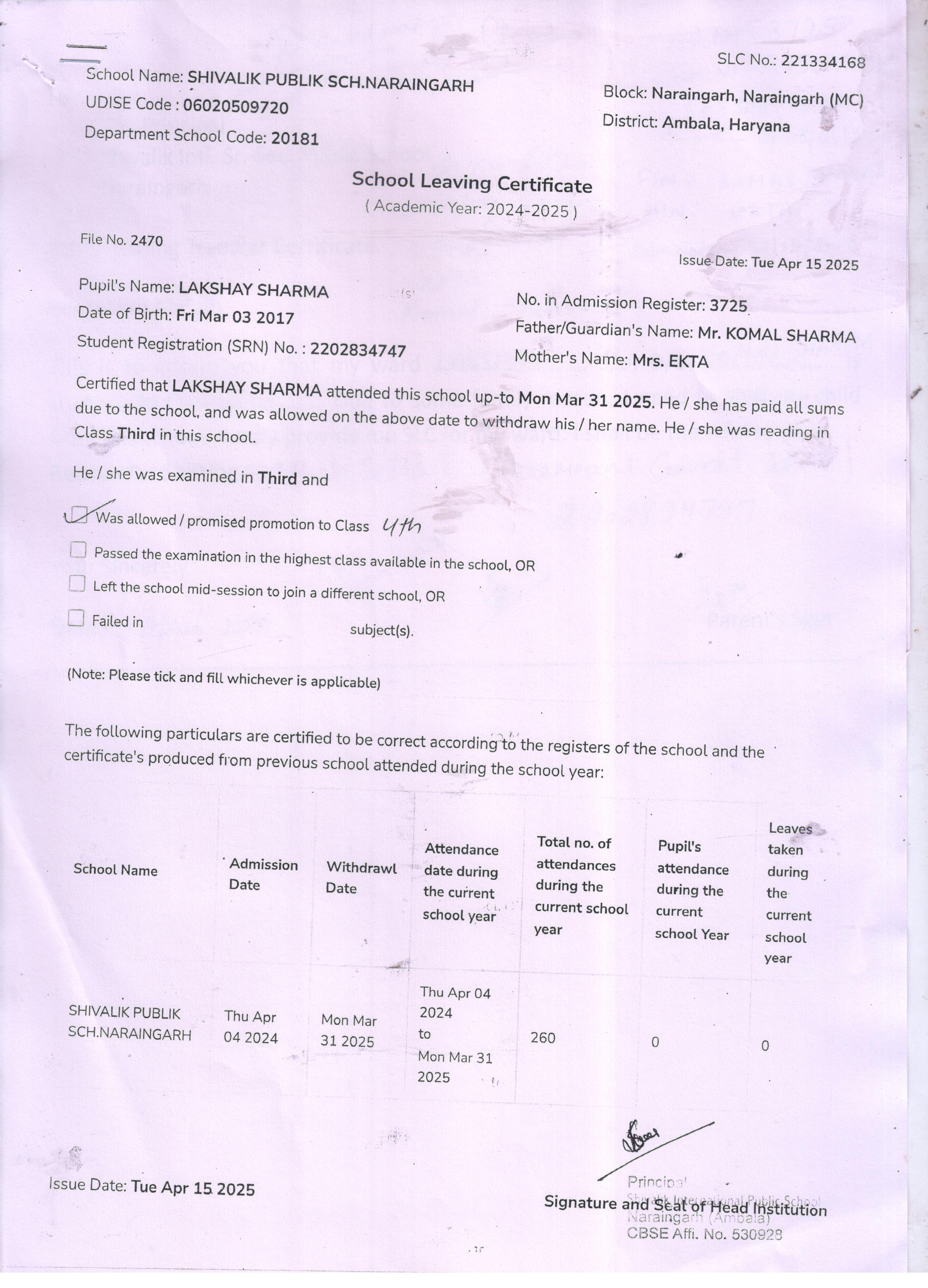 28 3725 LAKSHAY SHARMA KOMAL SHARMA 2024-25 Attachment