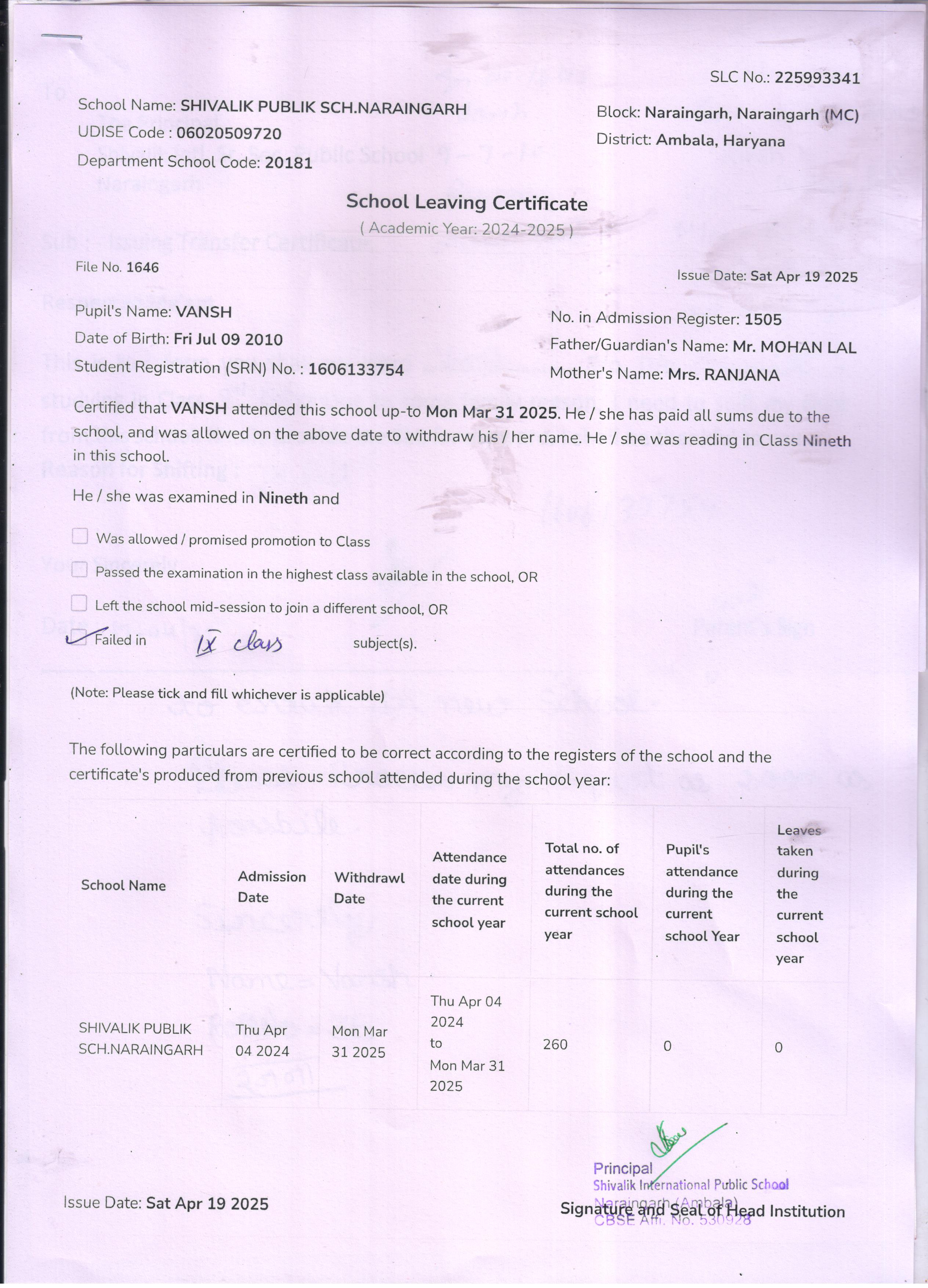 77 1505 VANSH MOHAN LAL 2024-25 Attachment