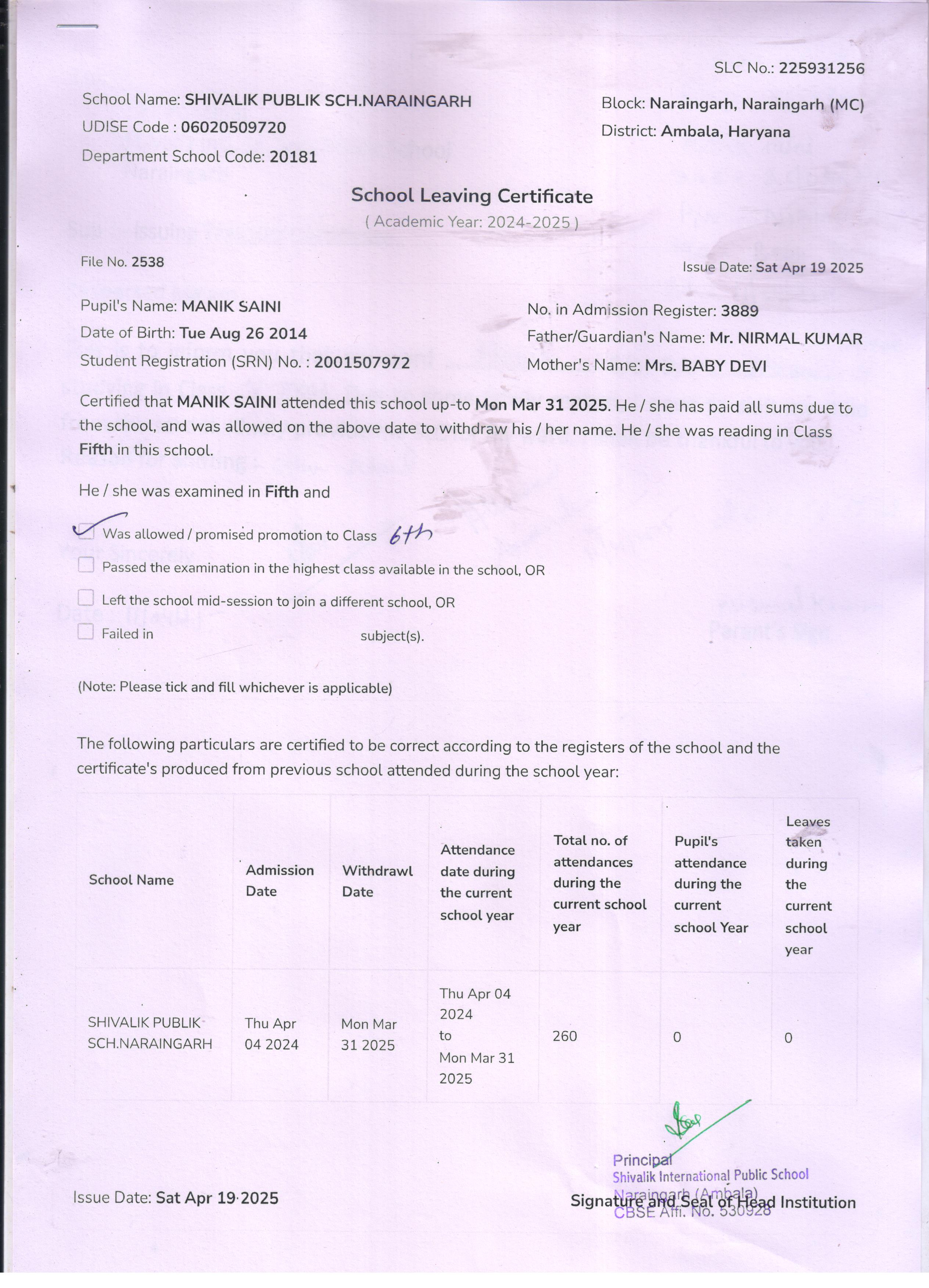 86 3889 MANIK SAINI NIRMAL SINGH 2024-25 Attachment