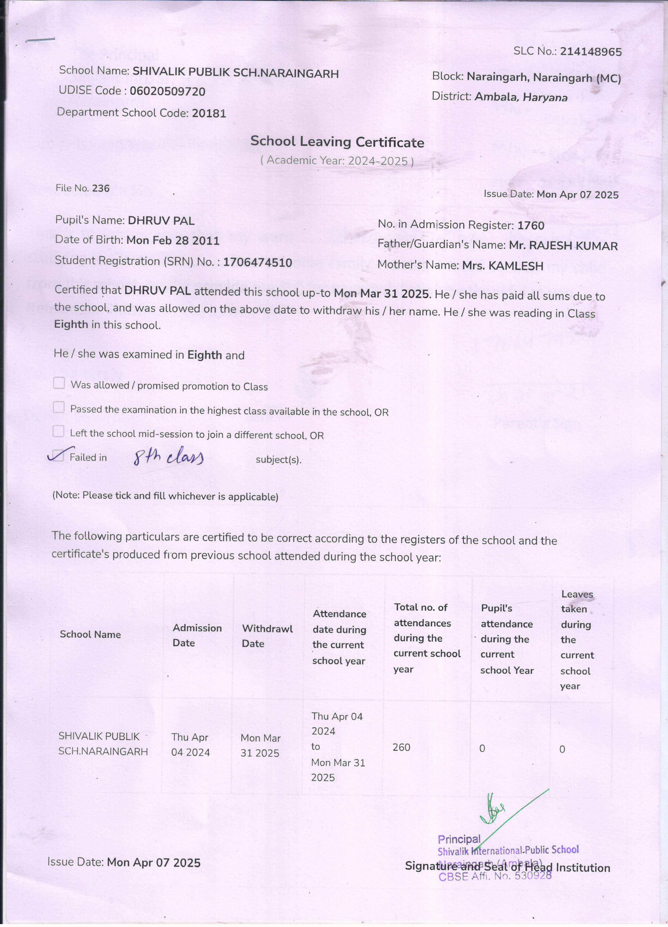 89 1760 DHRUV PAL RAJESH KUMAR 2024-25 Attachment