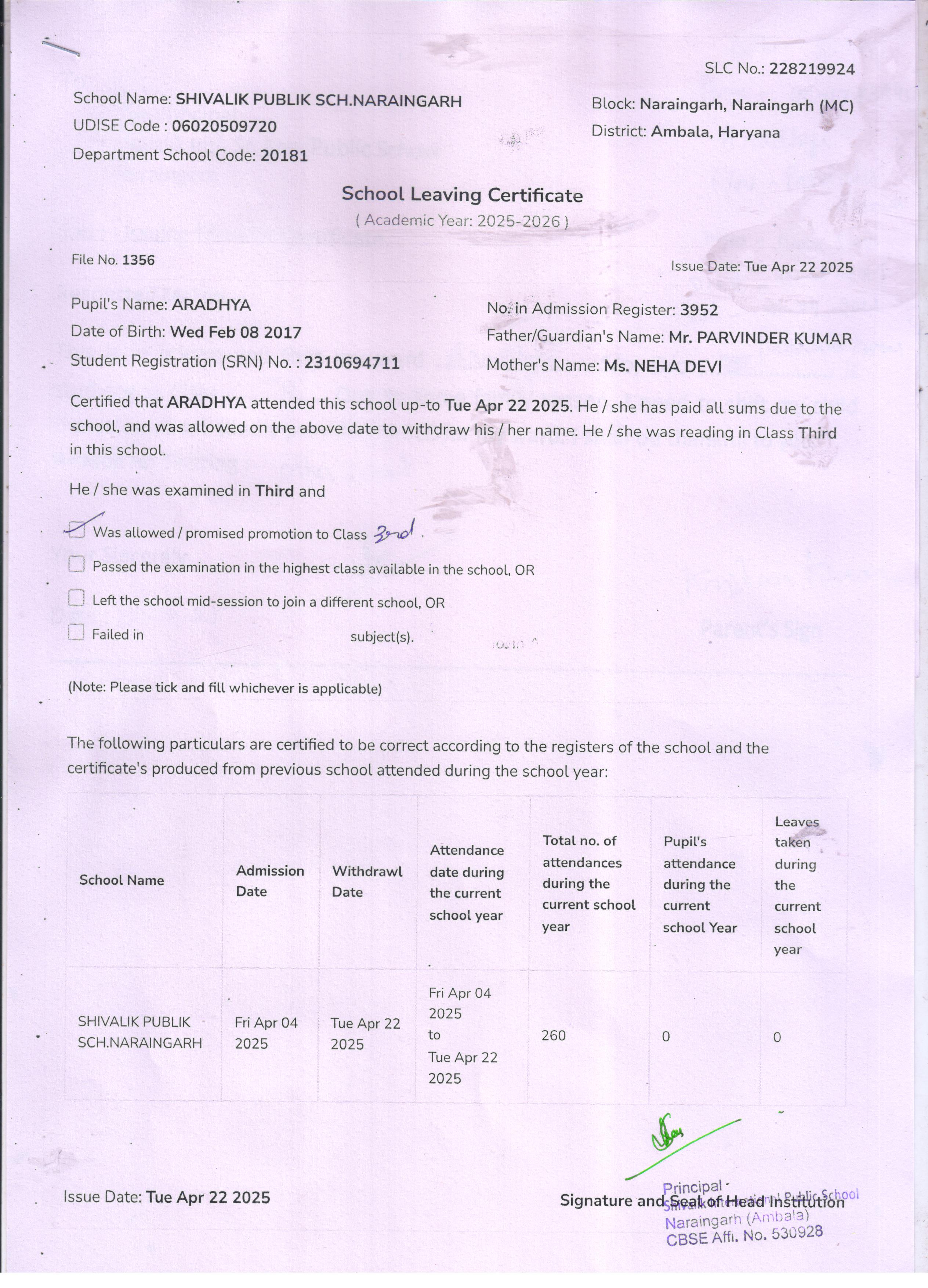 94 3952 ARADHAYA PARVINDER KUMAR 2024-25 Attachment