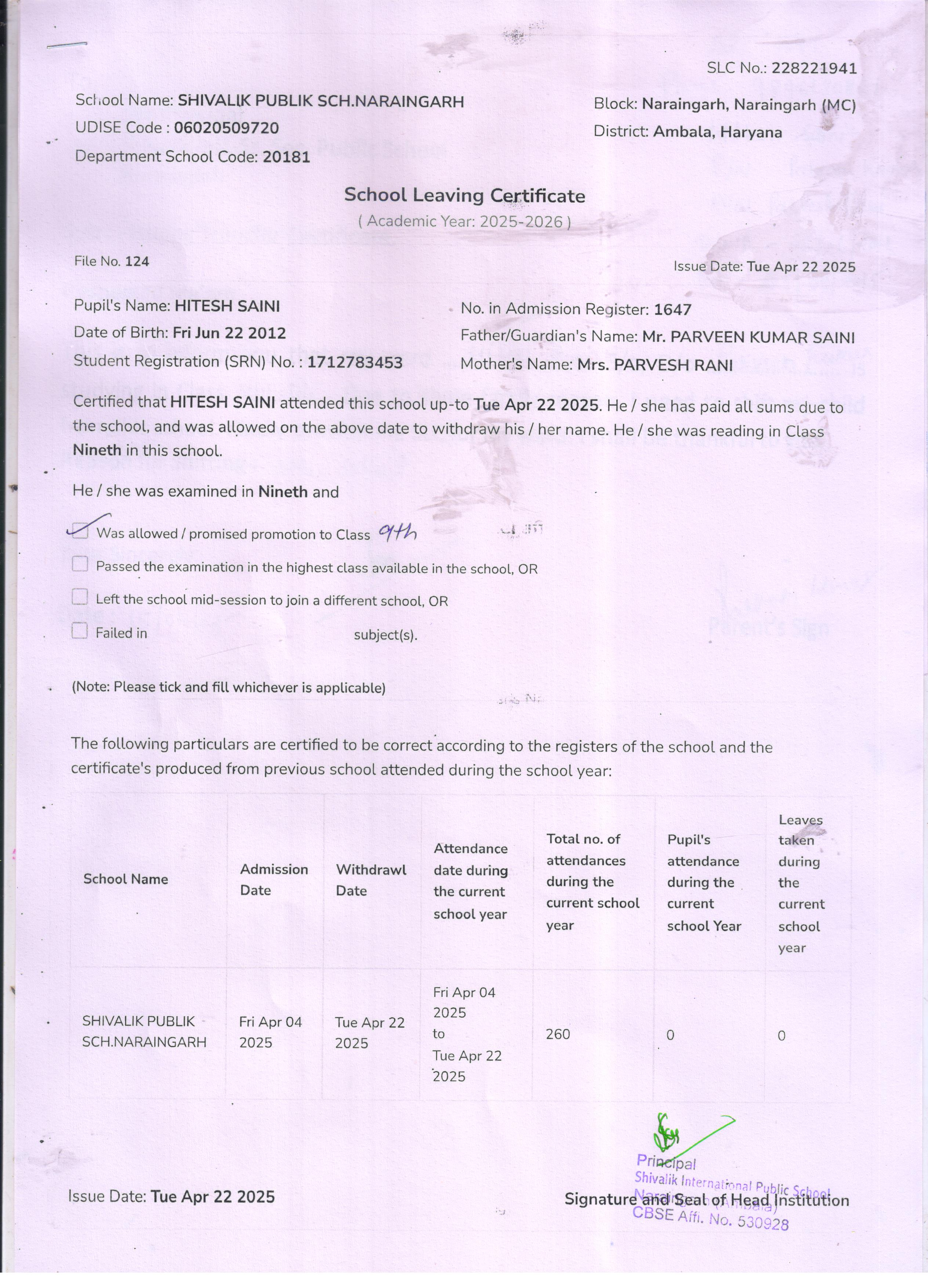 96 1647 HITESH SAINI PARVEEN KUMAR 2024-25 Attachment