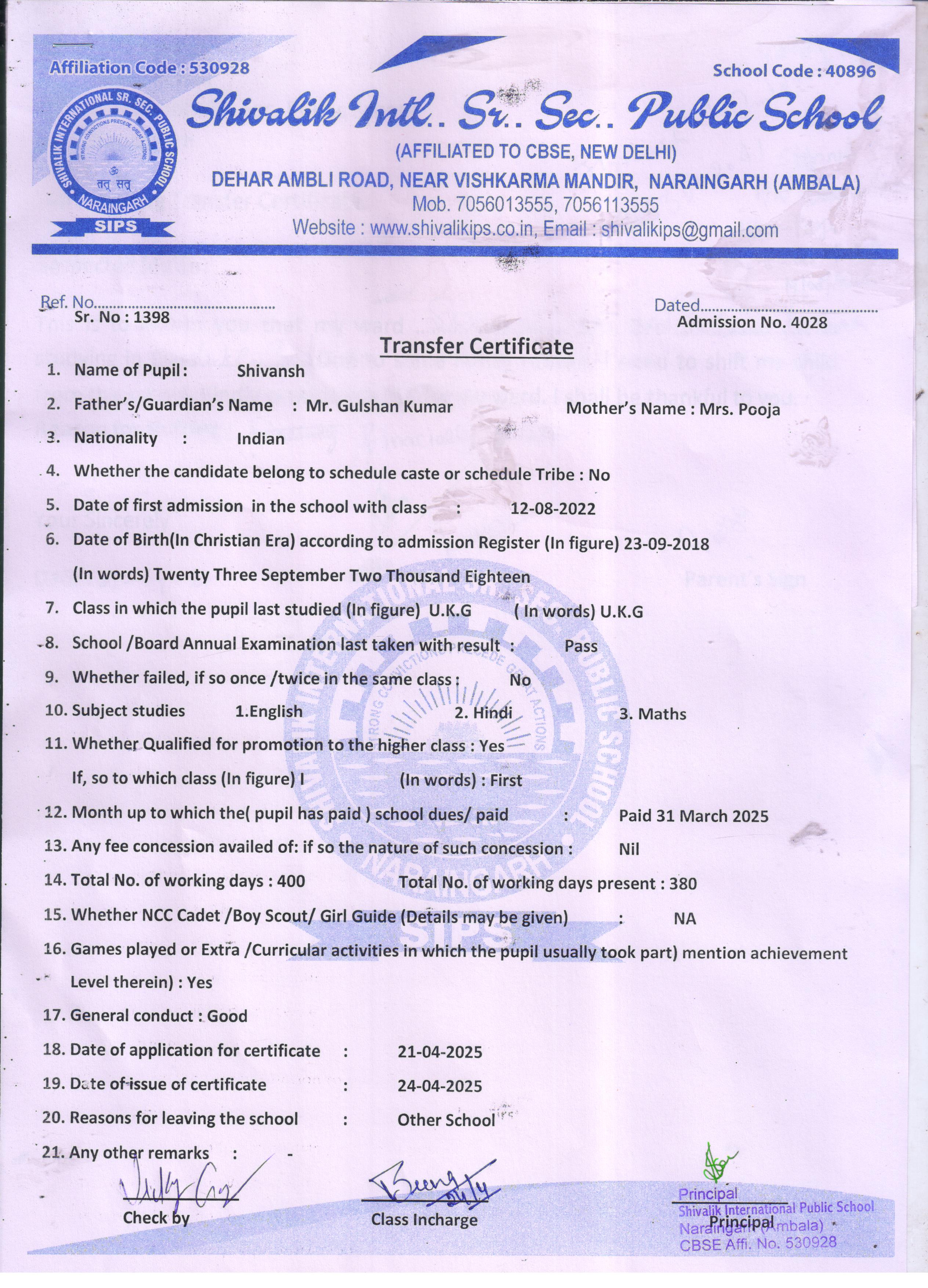 100 4028 SHIVANSH GULSHAN KUMAR 2024-25 Attachment