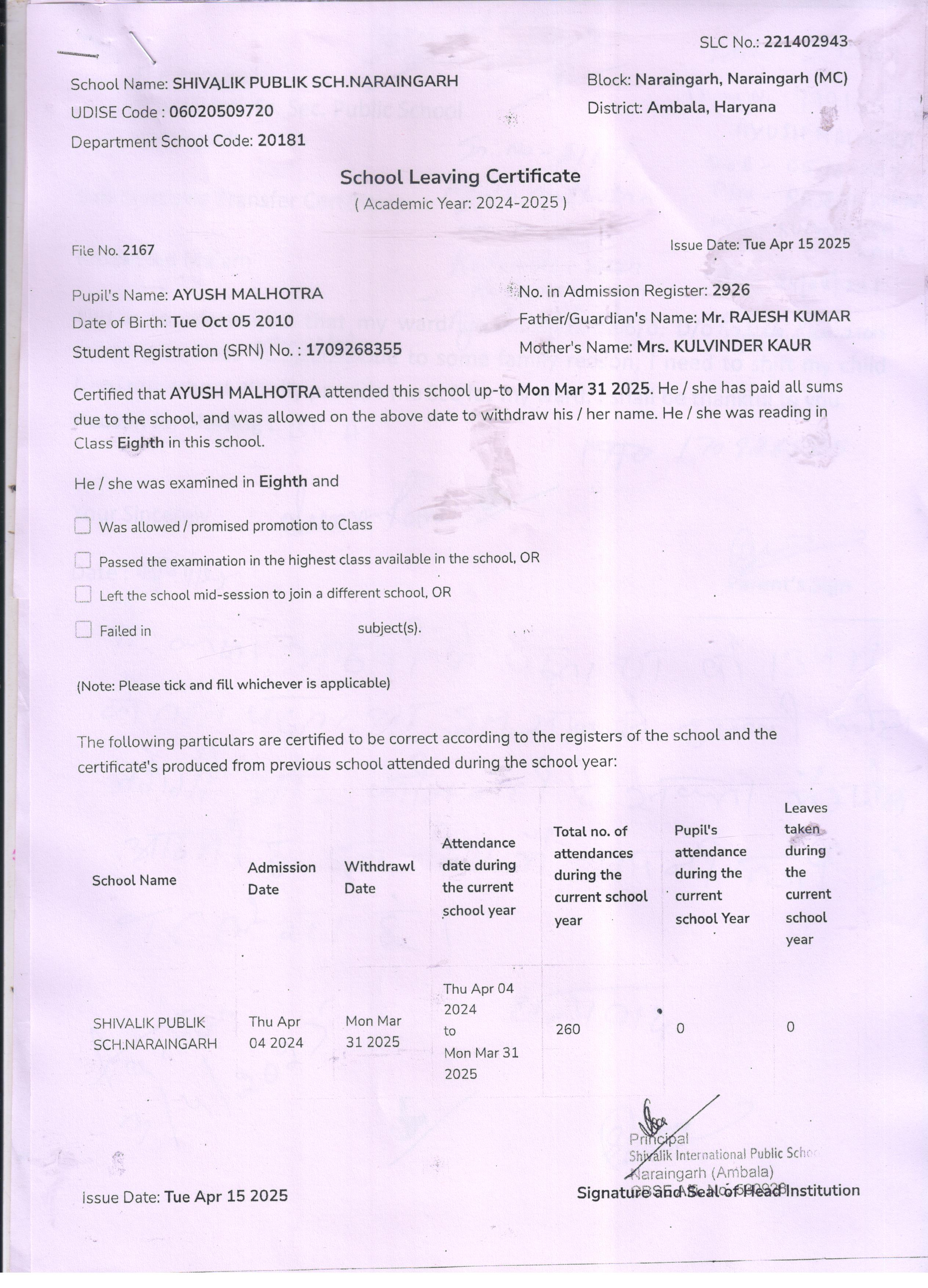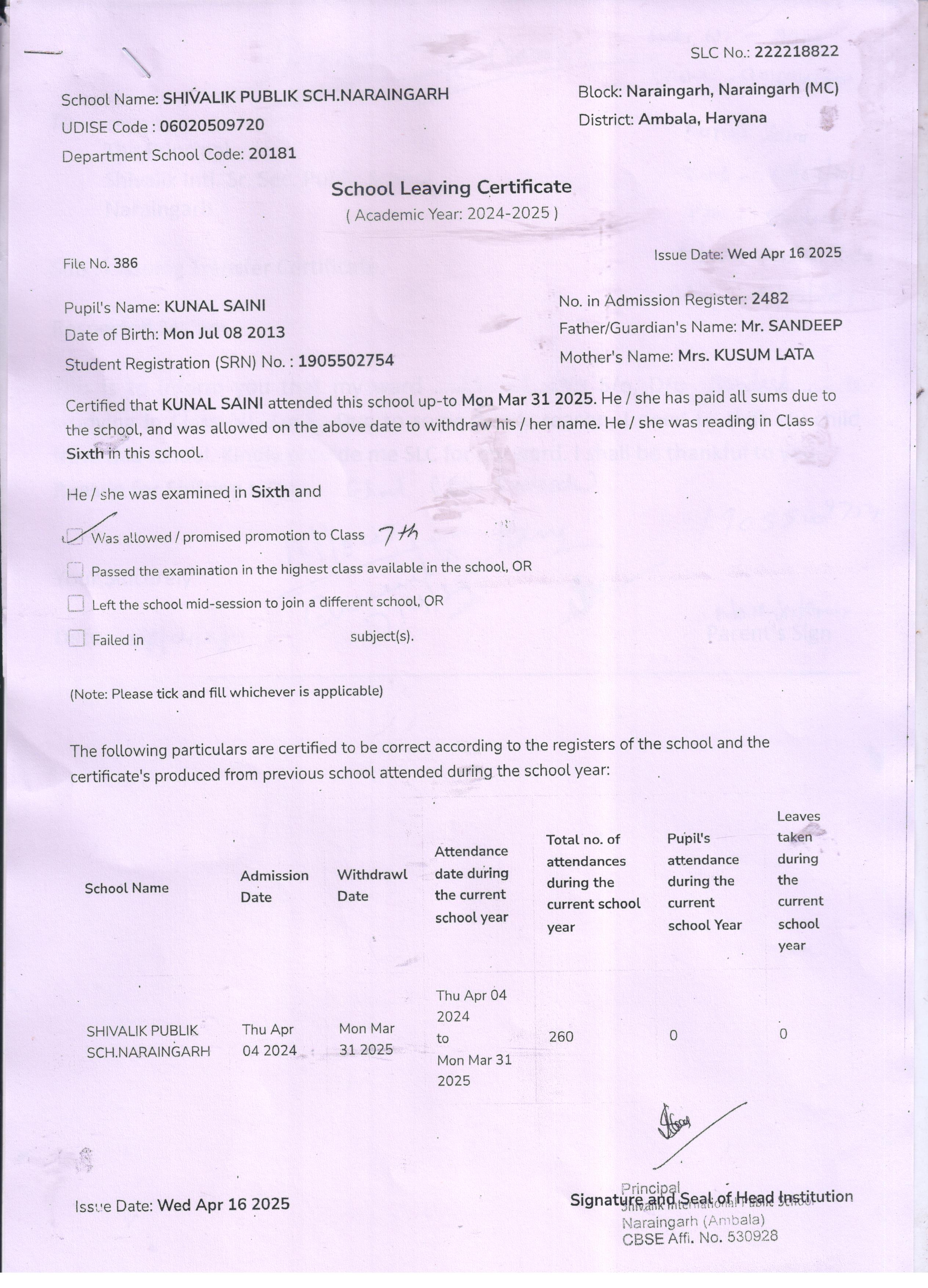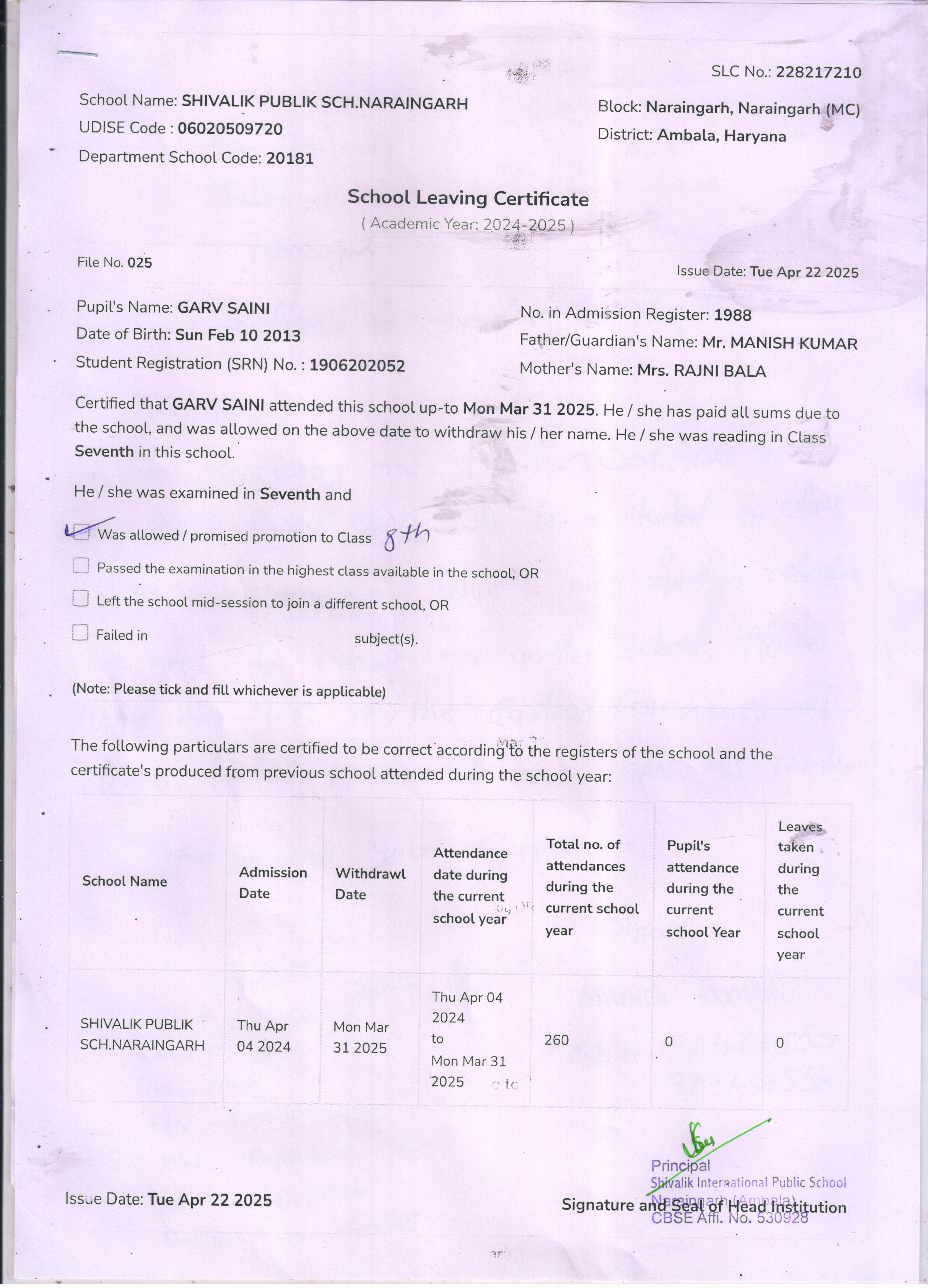59 3434 AARAV AMANDEEP SAINI 2024-25 Attachment