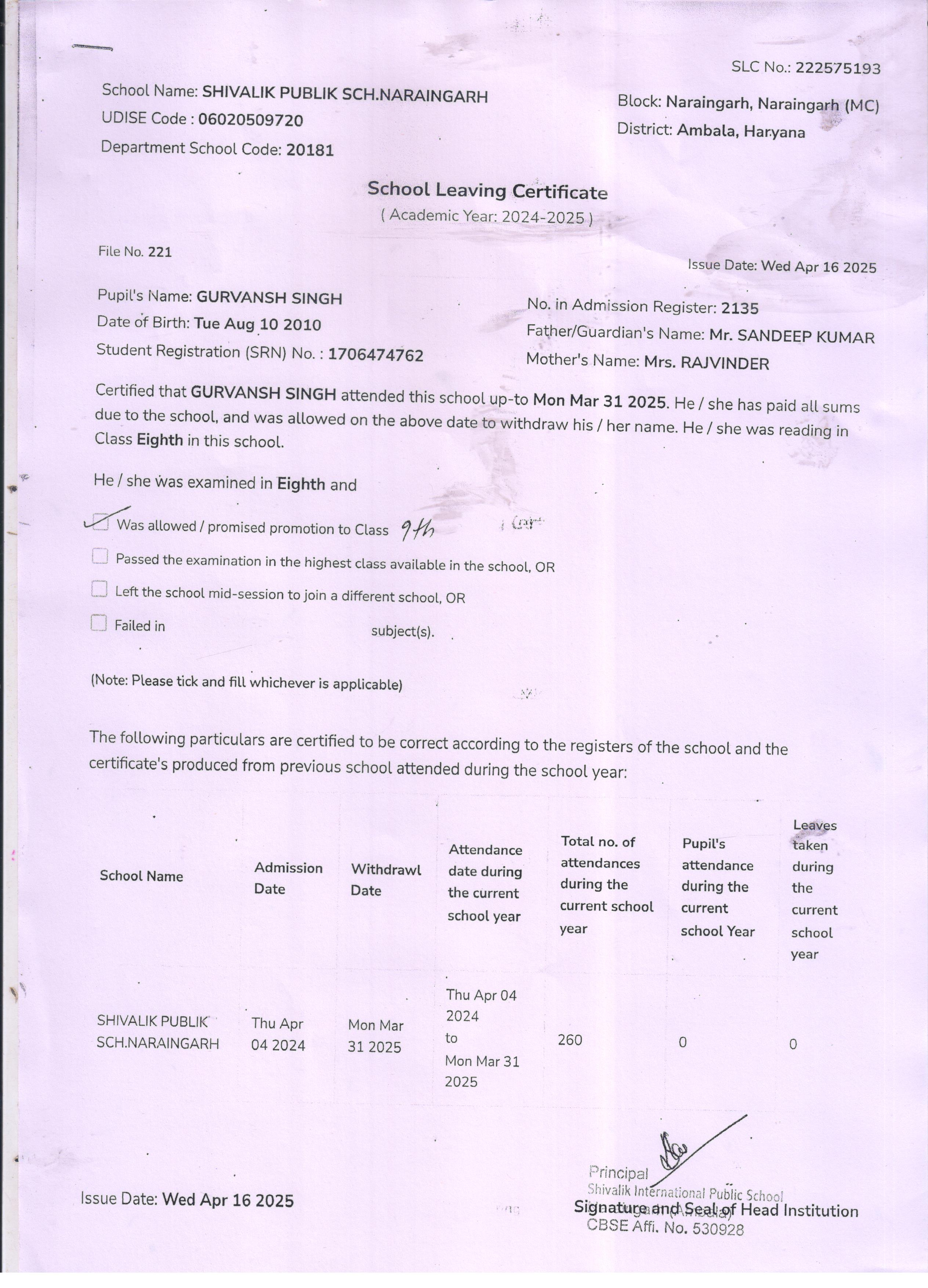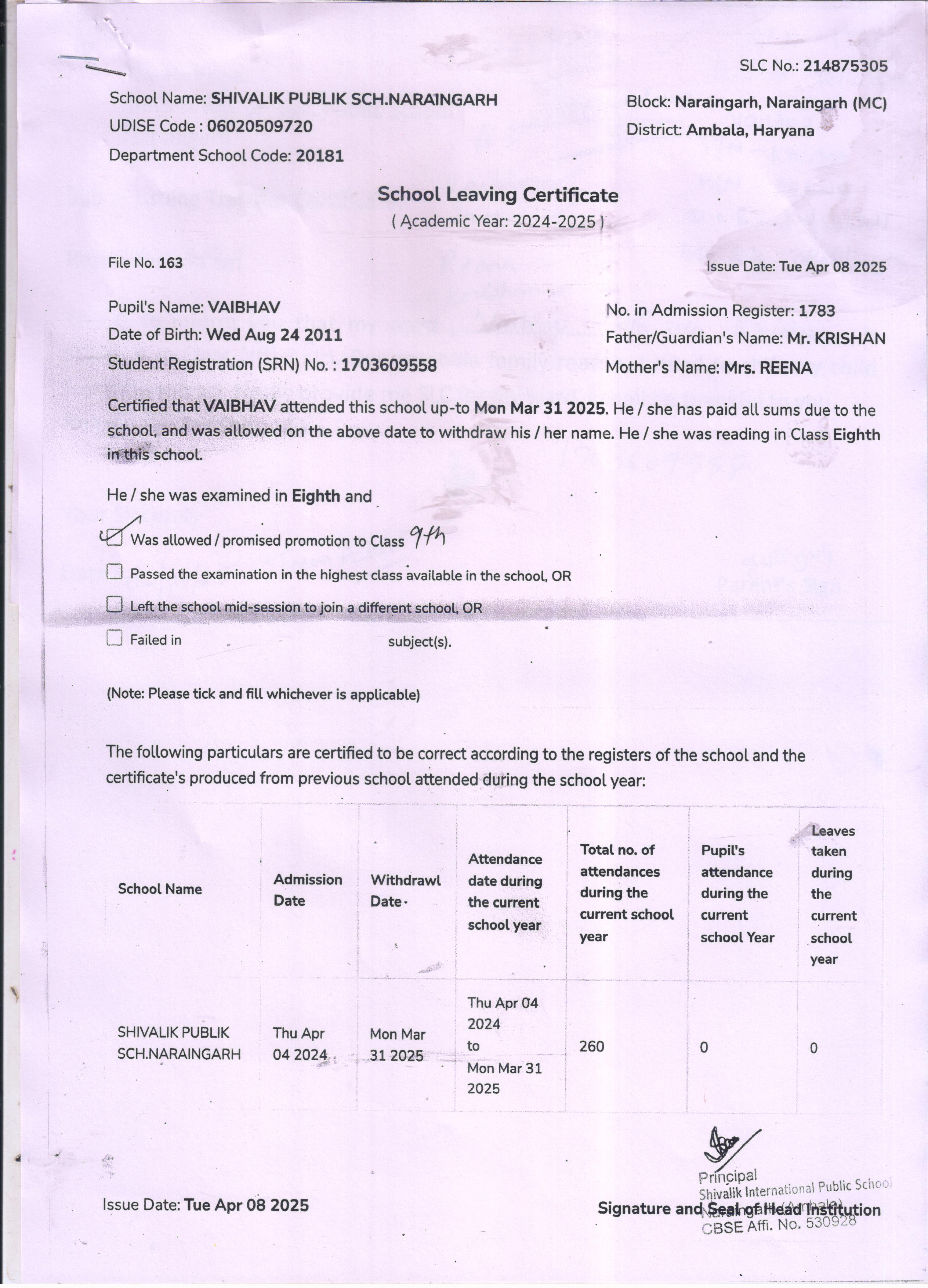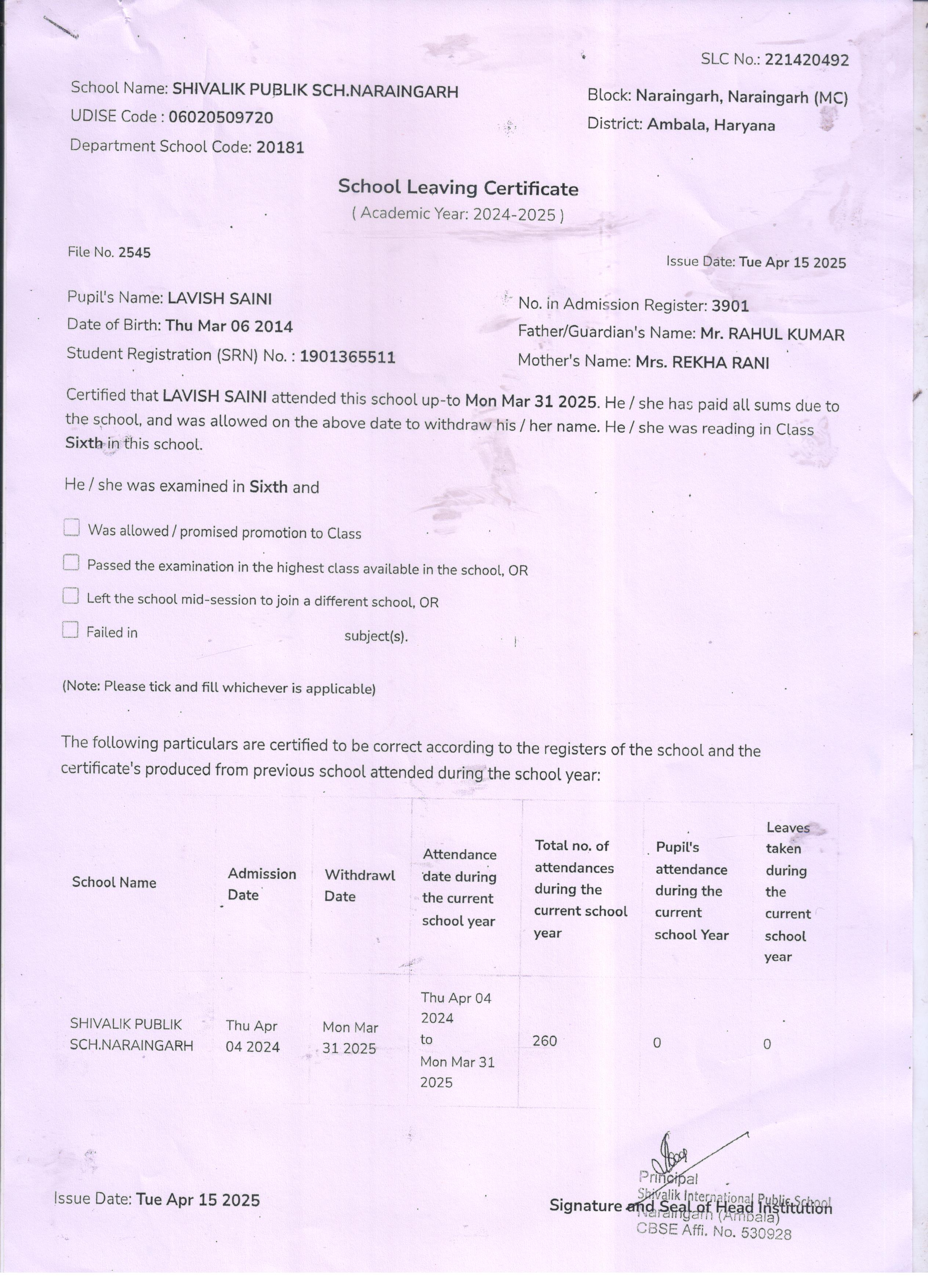 59 3434 AARAV AMANDEEP SAINI 2024-25 Attachment