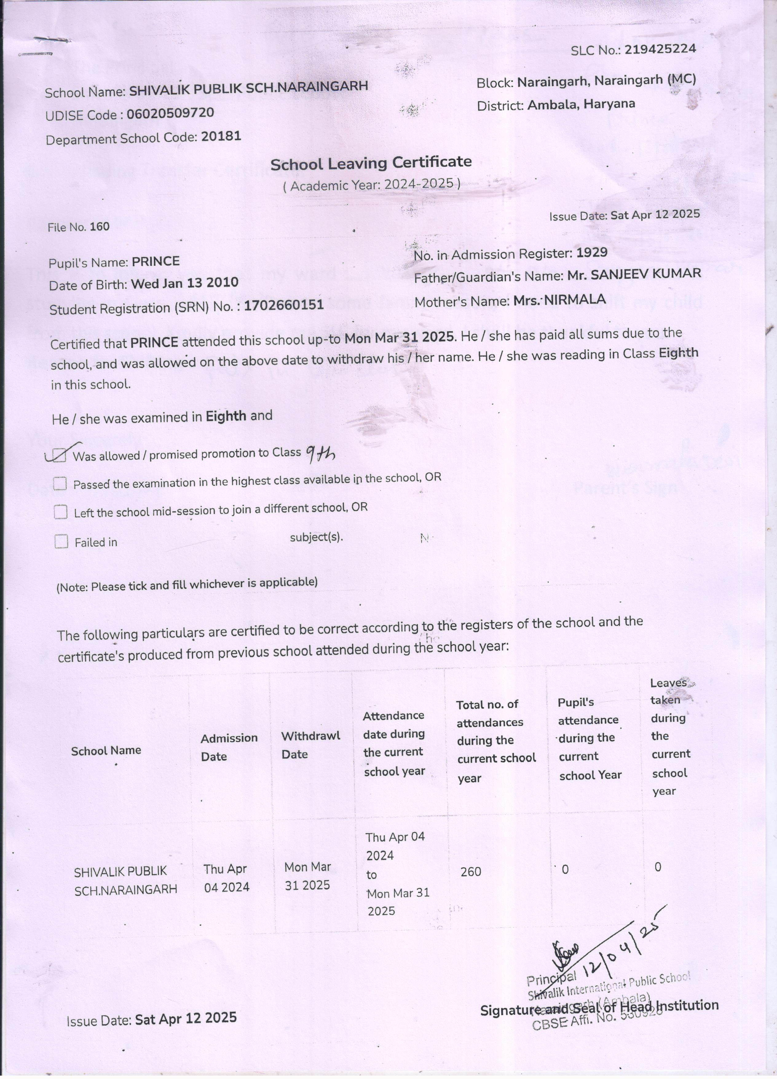 31 1929 PRINCE SANJEEV KUMAR 2024-25 Attachment
