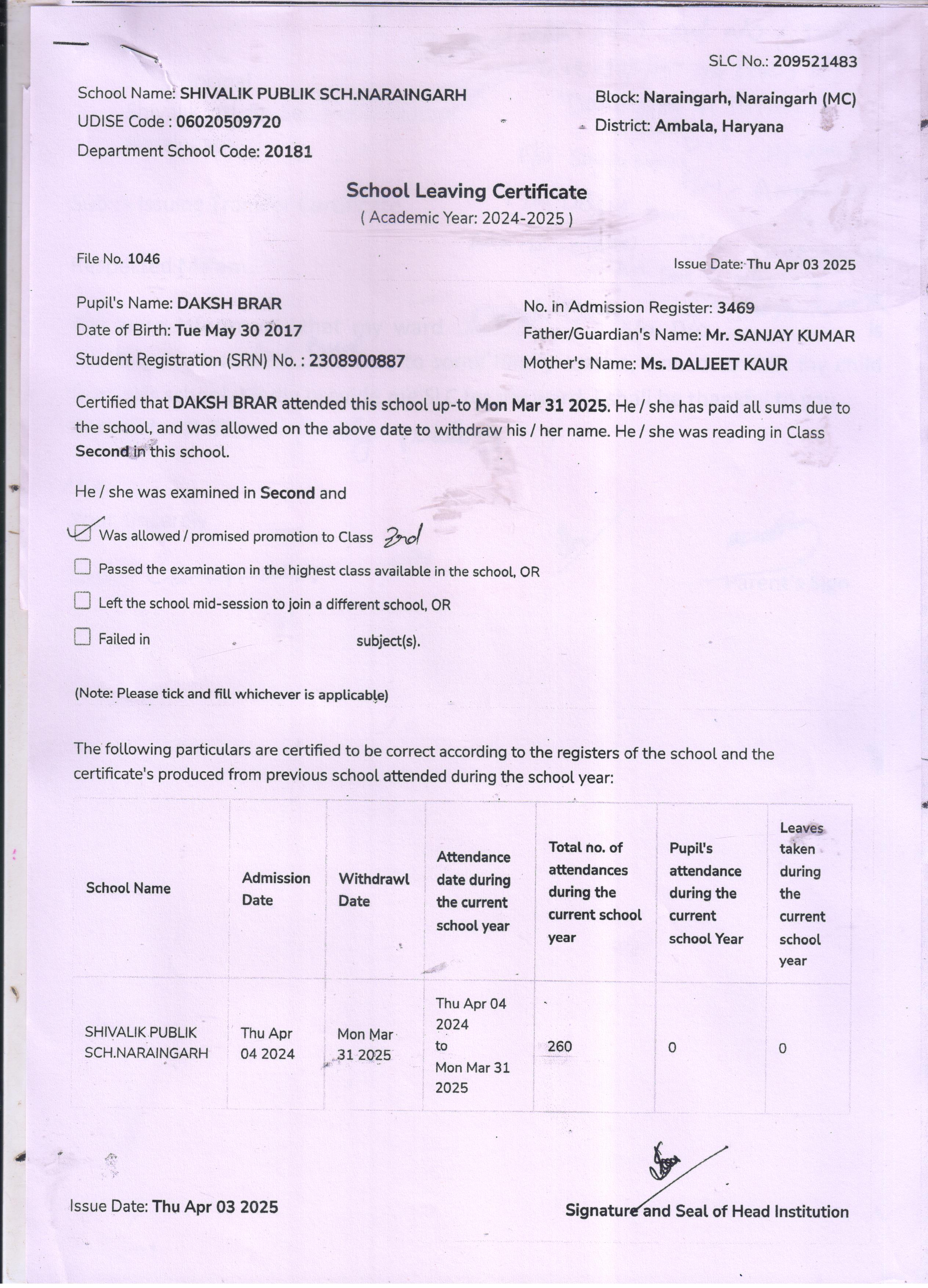 56 3469 DAKSH BRAR SANJAY KUMAR 2024-25 Attachment