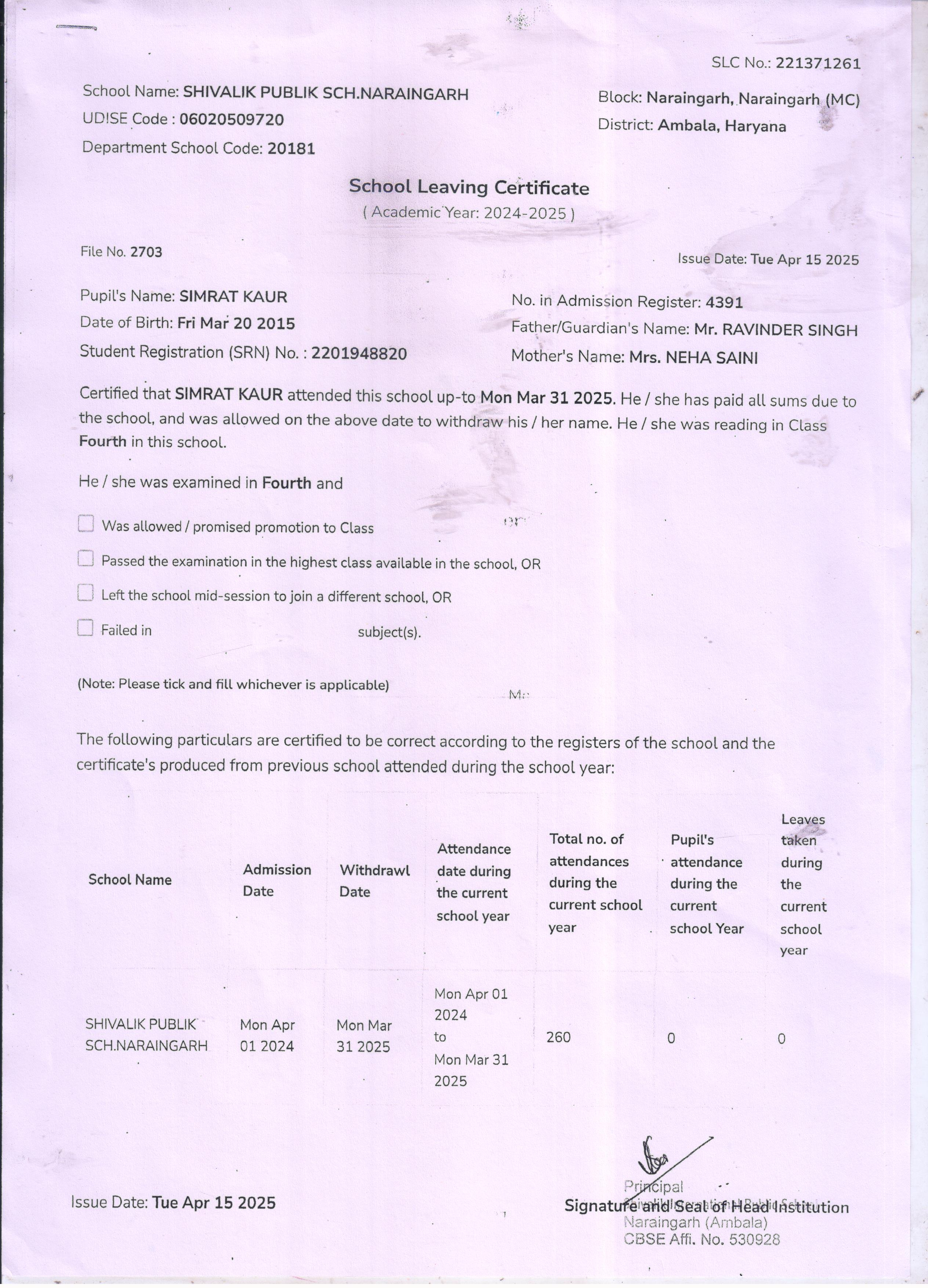 65 4391 SIMRAT KAUR RAVINDER SINGH 2024-25 Attachment