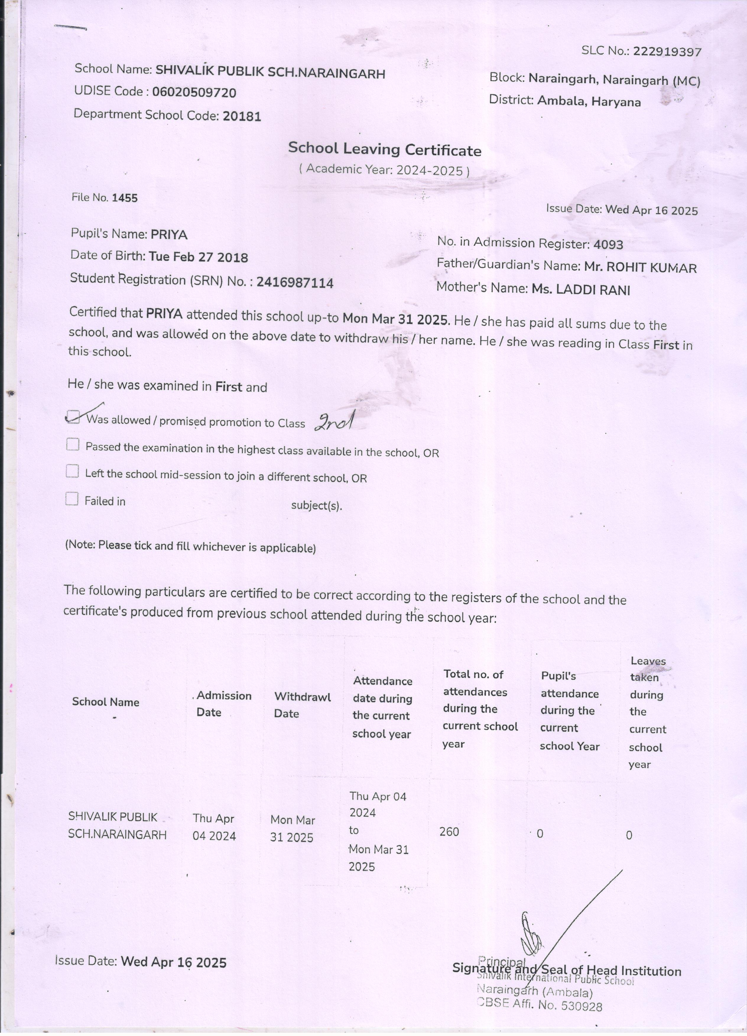 6 3636 SECOND BABY OF POONAM RISHI PAL 2024-25 Attachment