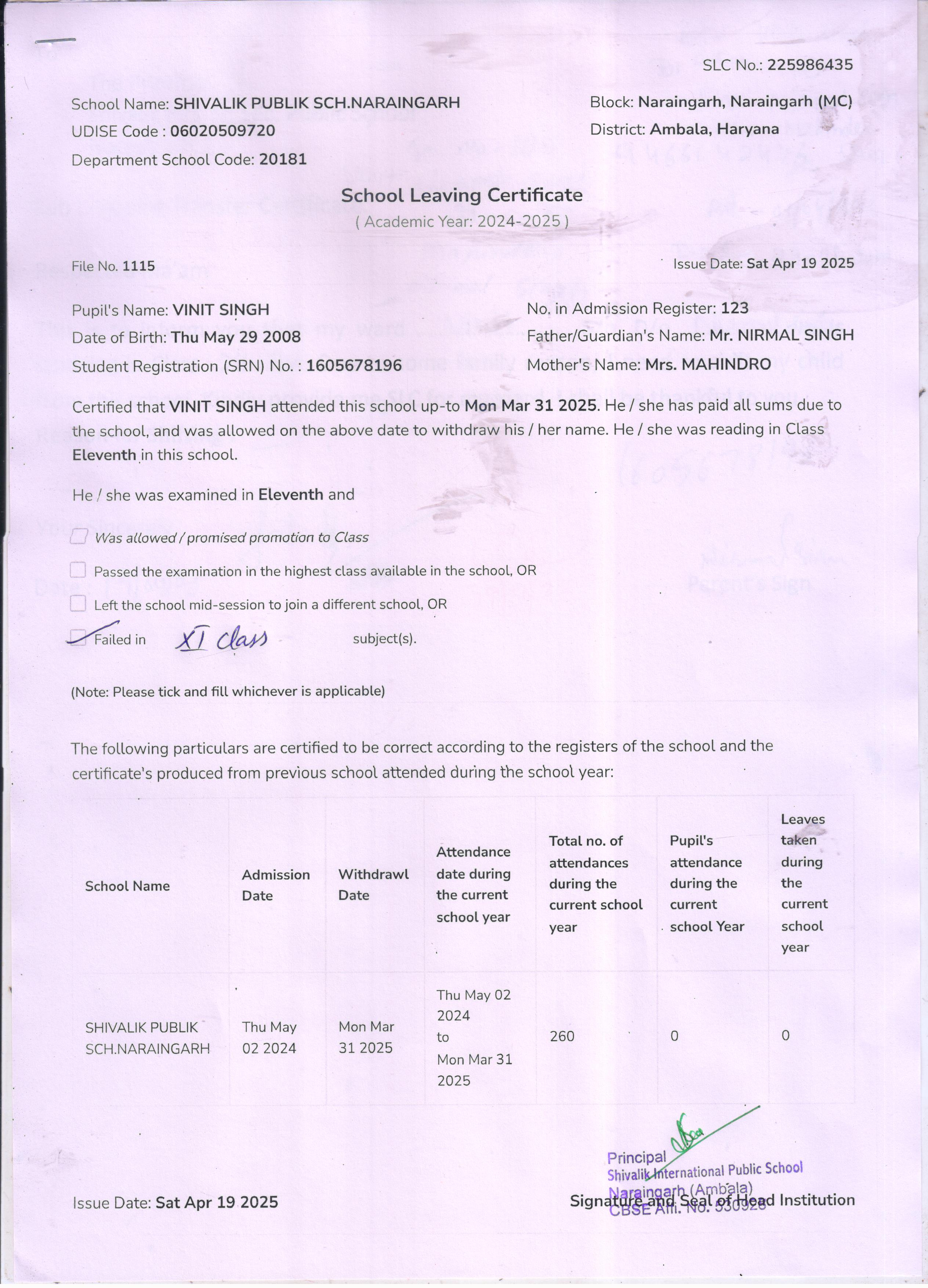 78 123 VINIT SINGH NIRMAL SINGH 2024-25 Attachment