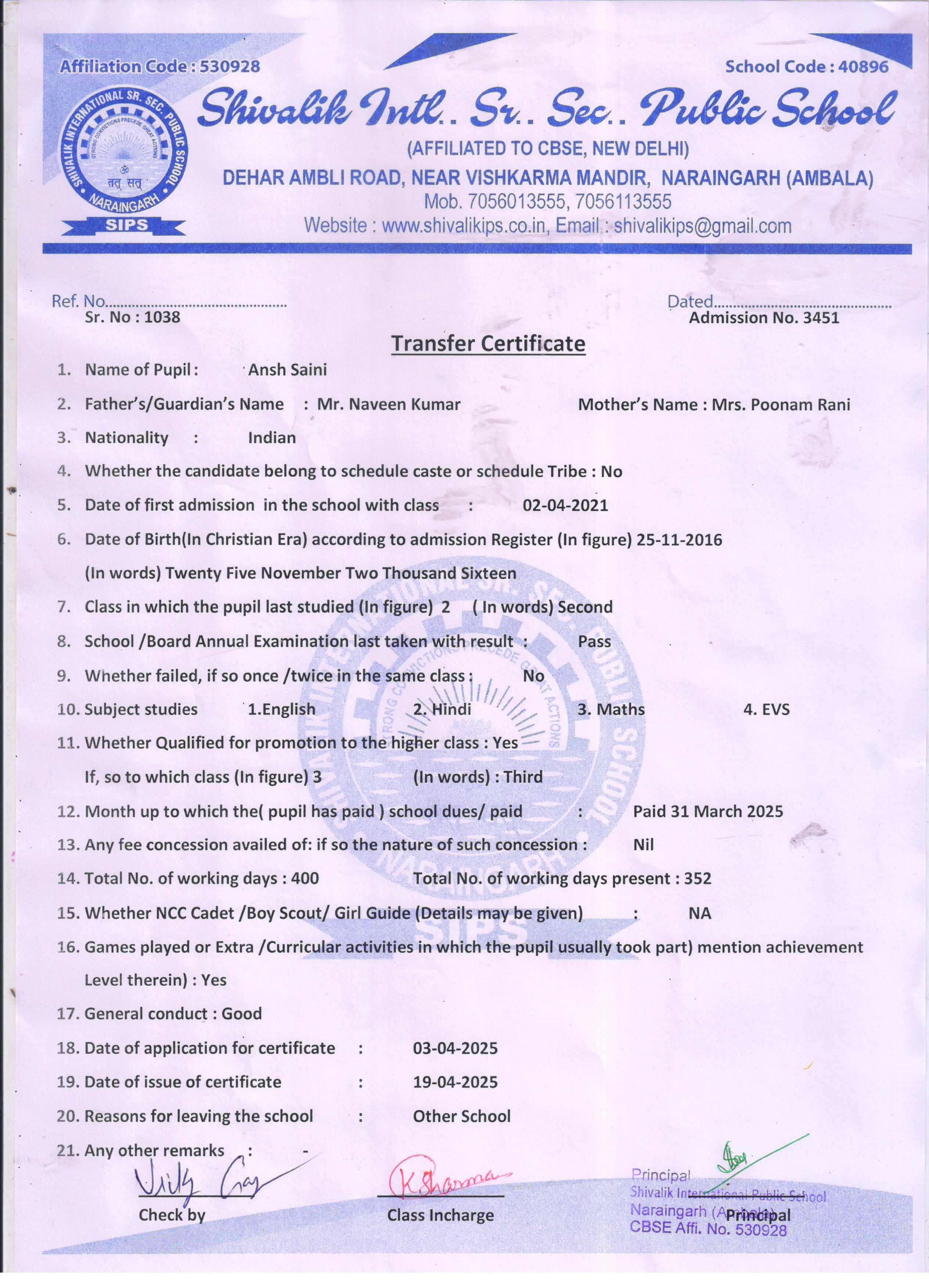 86 3889 MANIK SAINI NIRMAL SINGH 2024-25 Attachment