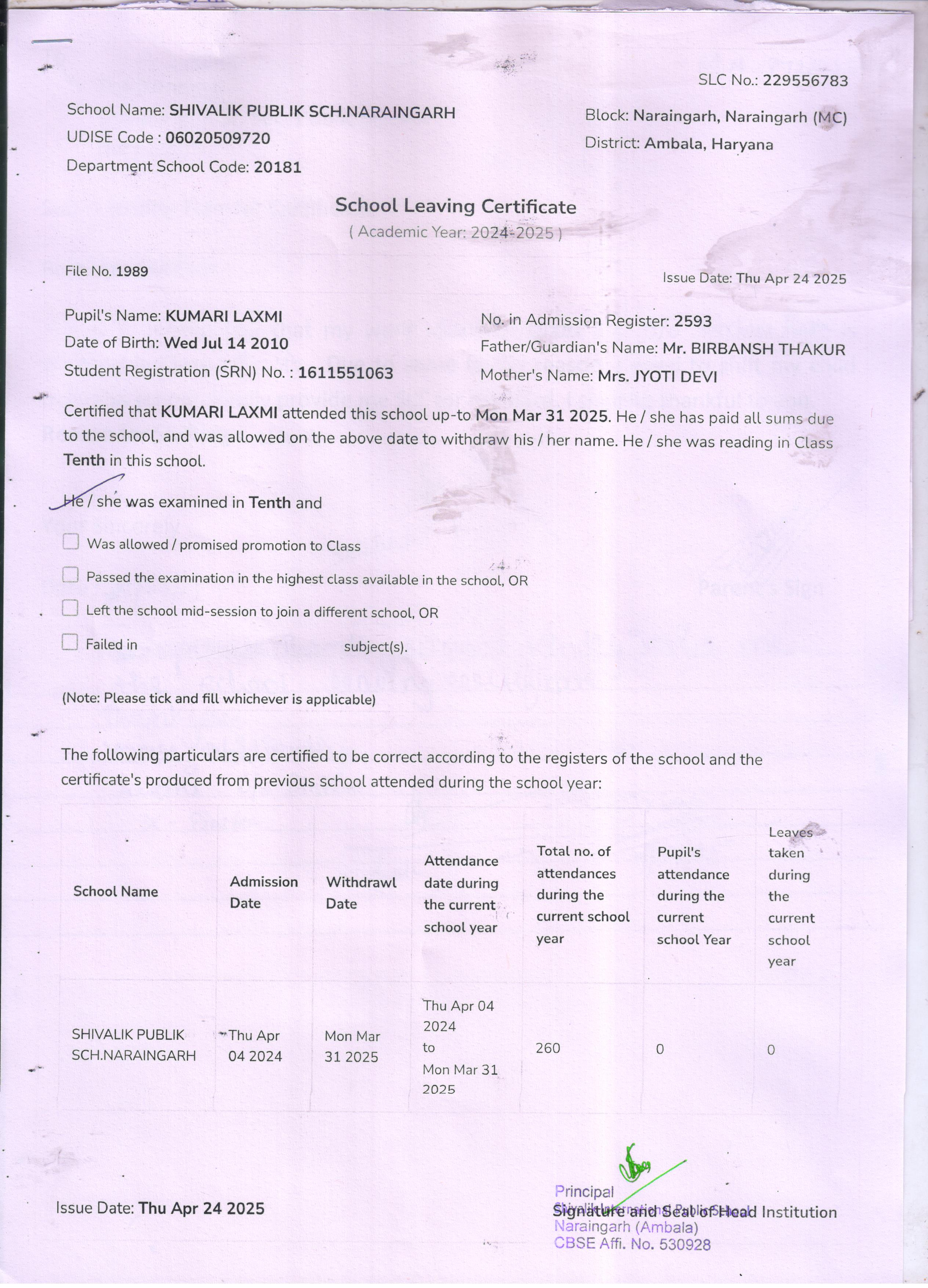 98 2589 KUMARI LAXMI BIRBANSH THAKUR 2024-25 Attachment