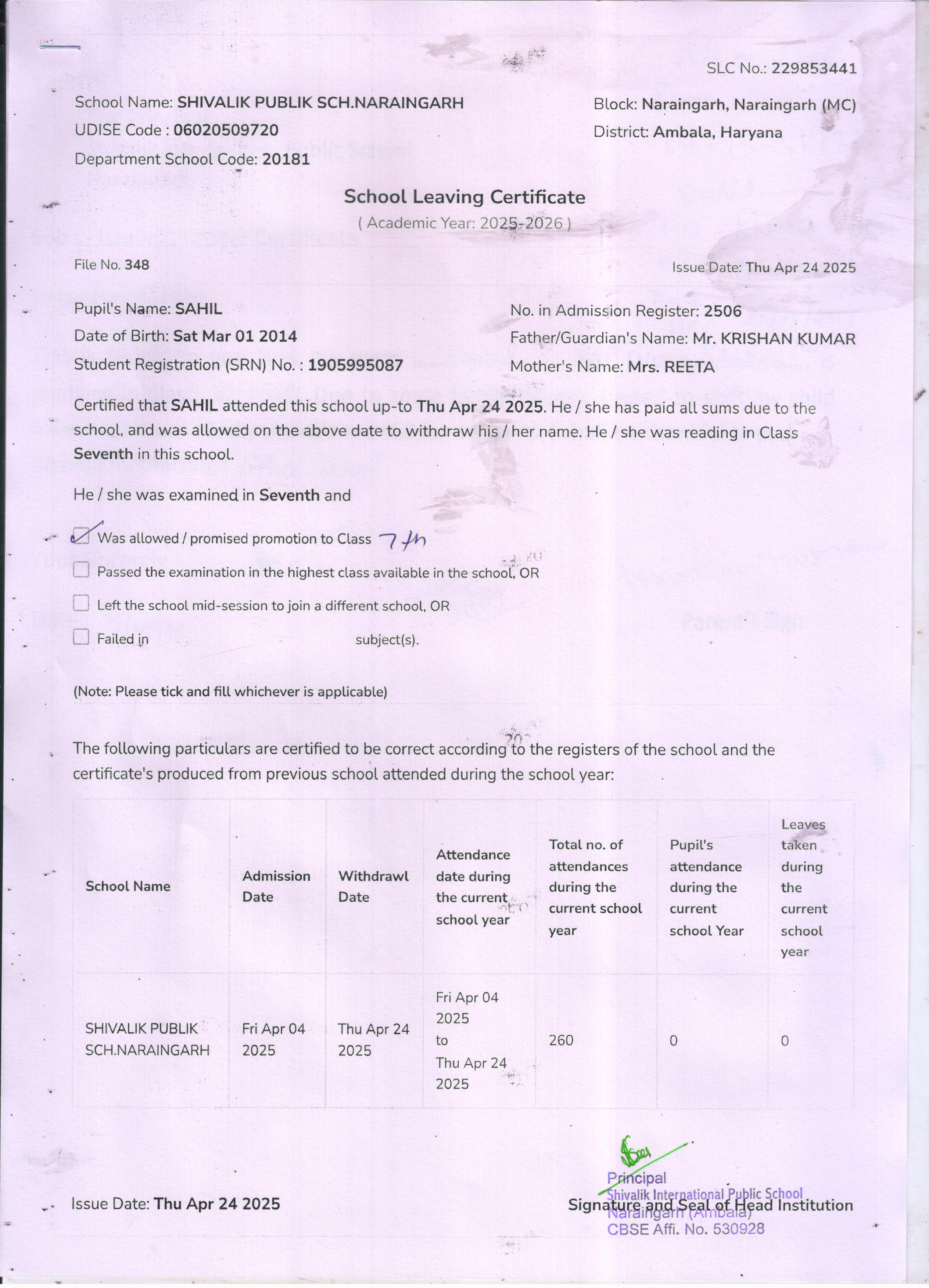 50 4529 VIHAN SONU KUMAR 2024-25 Attachment